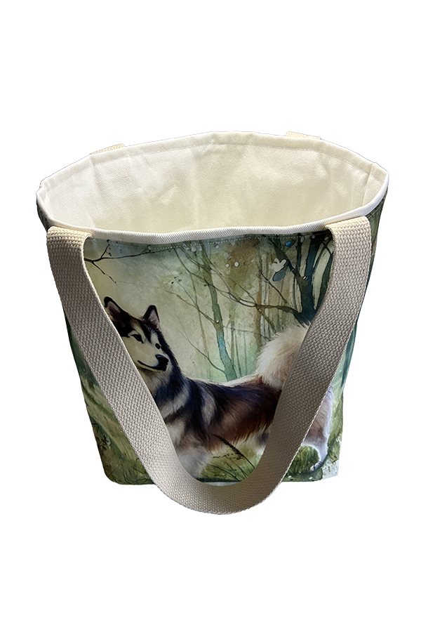Indulge in the luxury of artisan craftsmanship and canine charm with the Handmade Designer Husky Wooded Field Tote Bag. Impeccably crafted and undeniably chic, it is more than just a bag. It’s a statement piece that celebrates the bond between humans and hounds, encapsulating the joy and companionship that our furry friends bring into our lives. Another product that would complement this tote bag is the  Husky Deco Tote Bag. If you would like. Click here to visit my Etsy Store.