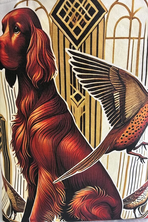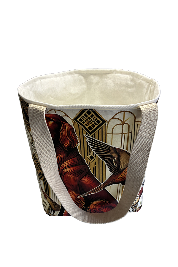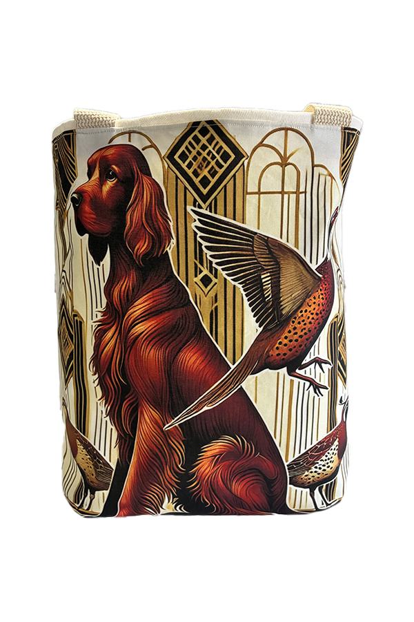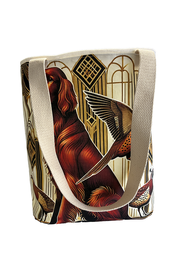 Treat yourself to a one-of-a-kind experience with our handmade designer Irish Setter Deco Tote Bag– a blend of craftsmanship, functionality, tradition, and cultural inspiration that transcends the ordinary.