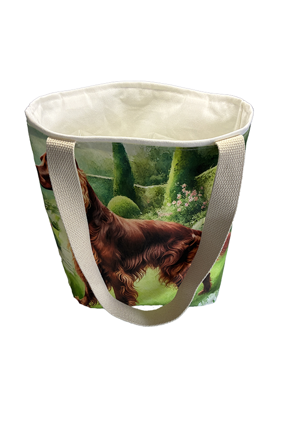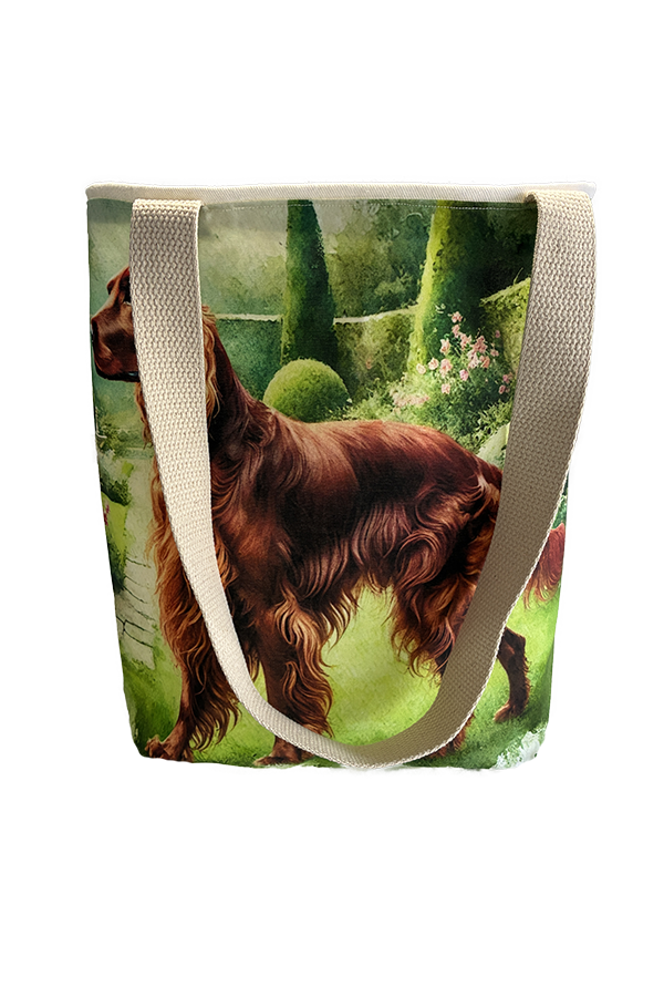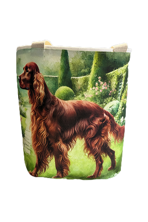 Treat yourself to a one-of-a-kind experience with our handmade designer Irish Setter Garden Tote Bag– a blend of craftsmanship, functionality, tradition, and cultural inspiration that transcends the ordinary.