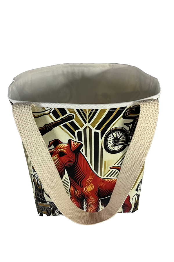 Indulge in the luxury of artisan craftsmanship and canine charm with the Handmade Designer Irish Terrier Daredevil Tote Bag. Impeccably crafted and undeniably chic, it is more than just a bag. It’s a statement piece that celebrates the bond between humans and hounds, encapsulating the joy and companionship that our furry friends bring into our lives. Another product that would complement this tote bag is the  Irish Terrier Garden Tote Bag. If you would like. Click here to visit my Etsy Store.