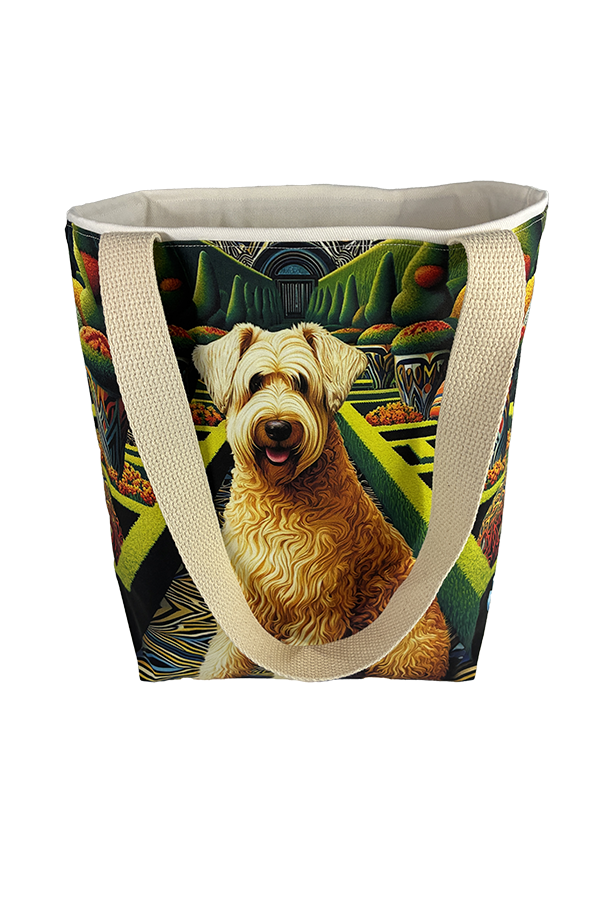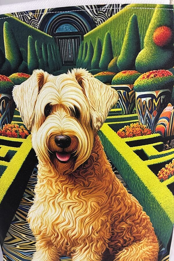 Indulge in the luxury of artisan craftsmanship and canine charm with the Handmade Designer Irish Wheaten OpArt Tote Bag. Impeccably crafted and undeniably chic, it is more than just a bag. It’s a statement piece that celebrates the bond between humans and hounds, encapsulating the joy and companionship that our furry friends bring into our lives. Another product that would complement this tote bag is the  Irish Wheaten Terrier Dreamin Tote Bag. If you would like. Click here to visit my Etsy Store.