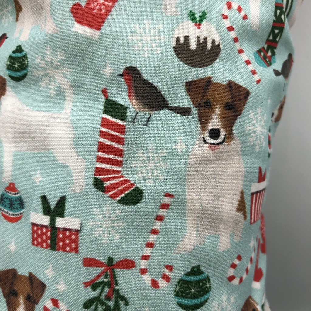 This Jack Russell #1 Christmas stocking is made with Jack Russell-themed designer fabric and lined with soft anti-pill fleece. All Christmas stockings are handmade by me in my studio. Another product complimenting this Jack Russell #1 Christmas stocking is the Jack Russell #1 Tote Bag. If you would like, Click here to visit my Etsy site.