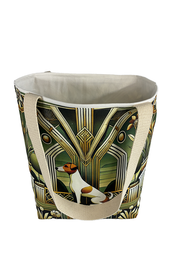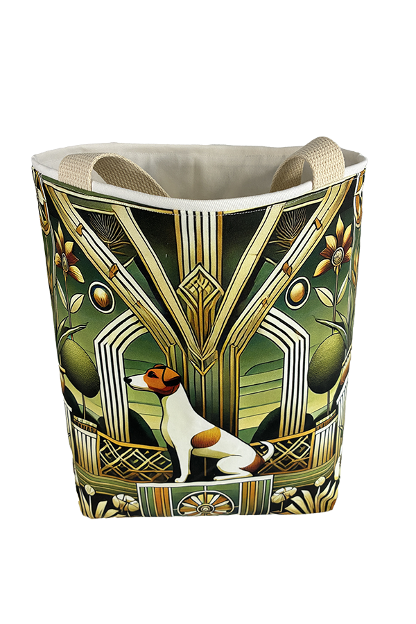 Indulge in the luxury of artisan craftsmanship and canine charm with the Handmade Designer Jack Russell Deco Tote Bag. Impeccably crafted and undeniably chic, it is more than just a bag. It’s a statement piece that celebrates the bond between humans and hounds, encapsulating the joy and companionship that our furry friends bring into our lives. Another product that would complement this tote bag is the  Jack Russell Terrier Ball Tote Bag. If you would like. Click here to visit my Etsy Store.