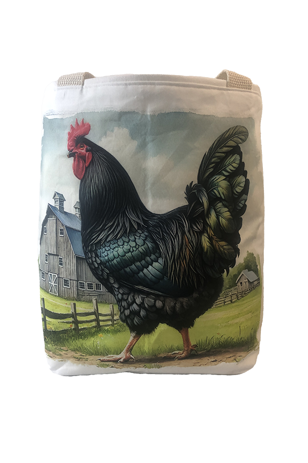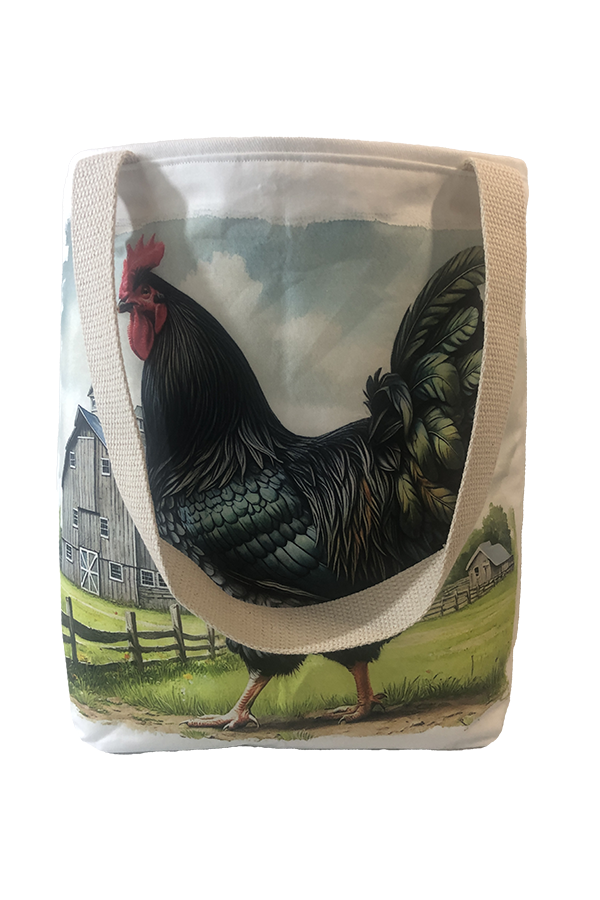 Crafted meticulously, this Handmade Designer Jersey Giant Farm tote bag showcases a picture of a majestic show chicken, capturing its elegance and vibrant plumage in stunning detail. The design is printed on an all-cotton outer layer, which is durable and lends a soft, luxurious feel to the bag. The outer fabric is carefully selected to ensure the striking image remains vibrant and eye-catching, making the tote a conversation starter wherever you go.