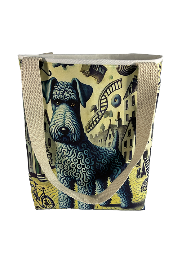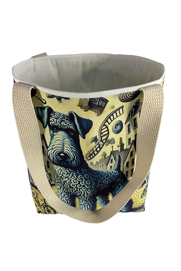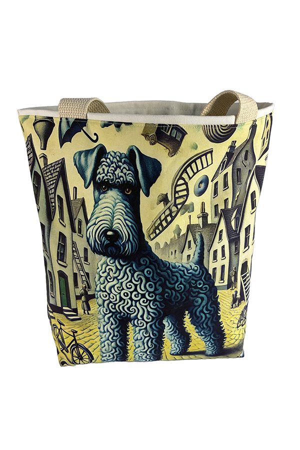 Indulge in the luxury of artisan craftsmanship and canine charm with the Handmade Designer Kerry Blue DaDa Tote Bag. Impeccably crafted and undeniably chic, it is more than just a bag. It’s a statement piece that celebrates the bond between humans and hounds, encapsulating the joy and companionship that our furry friends bring into our lives. Another product that would complement this tote bag is the  Kerry Blue Terrier Countryside Tote Bag. If you would like. Click here to visit my Etsy Store.