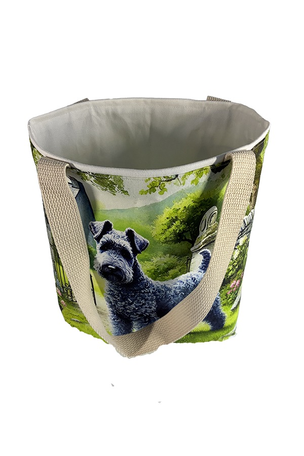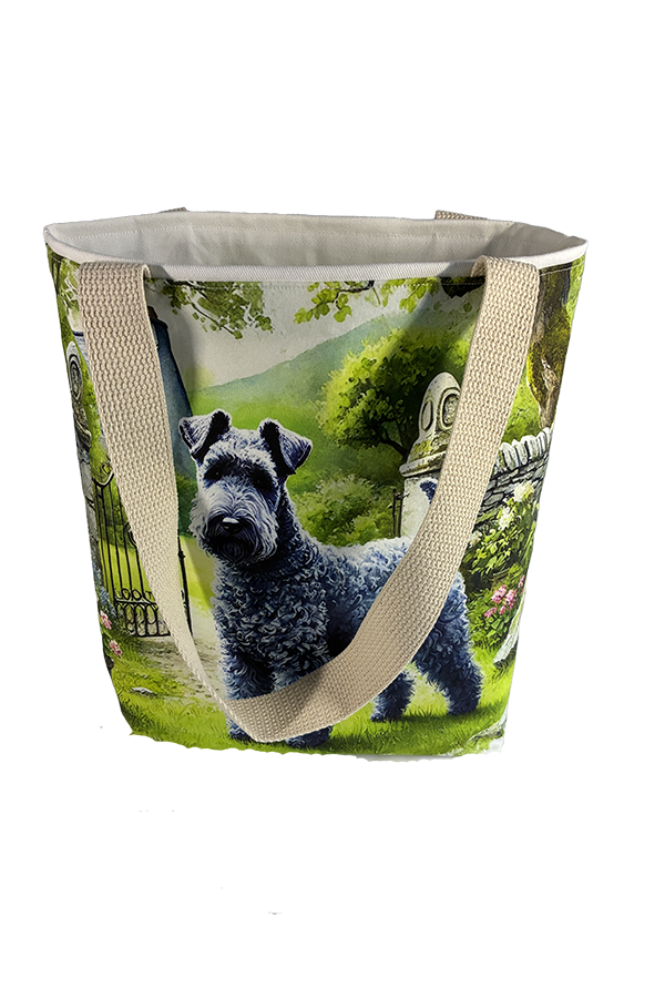 Indulge in the luxury of artisan craftsmanship and canine charm with the Handmade Designer Kerry Blue Garden Tote Bag. Impeccably crafted and undeniably chic, it is more than just a bag. It’s a statement piece that celebrates the bond between humans and hounds, encapsulating the joy and companionship that our furry friends bring into our lives. Another product that would complement this tote bag is the  Kerry Blue Terrier Village Tote Bag. If you would like. Click here to visit my Etsy Store.