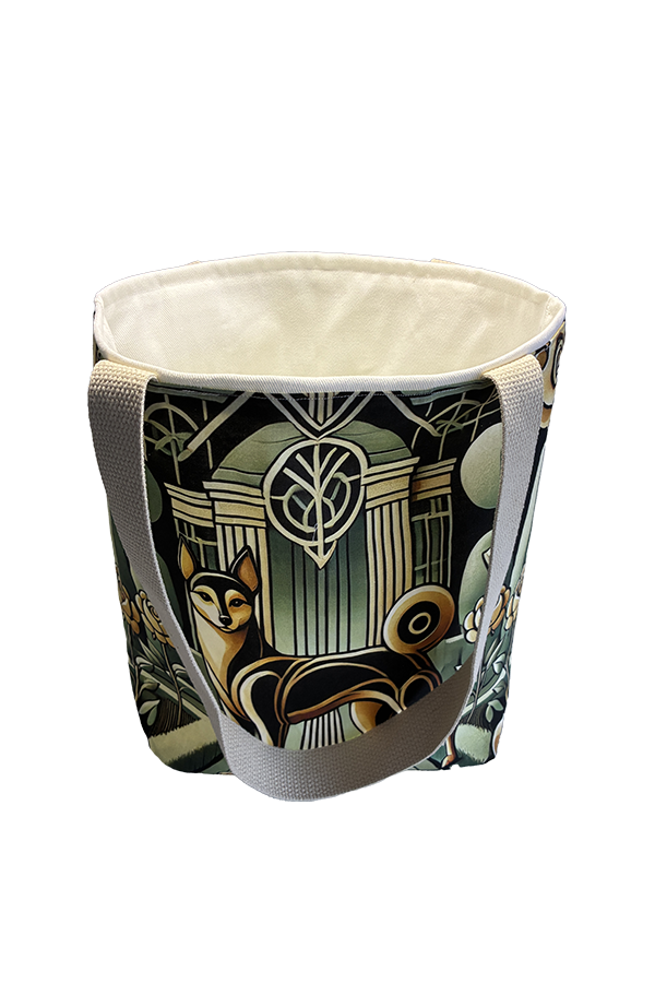 Introducing the epitome of canine elegance and artisan craftsmanship: the Handmade Designer Klee Kai Deco Tote Bag. Standing proud at 14 inches tall and stretching 16 inches wide, this exquisite accessory is a tribute to functionality and style. Crafted with meticulous attention to detail, it will become your wardrobe’s darling. At first glance, your eyes are immediately drawn to the captivating design gracing the tote’s exterior. Your pet is displayed in a beautiful scene with personality and charm. Their playful demeanor brings a touch of whimsy to the bag, making it a conversation starter wherever you go.
