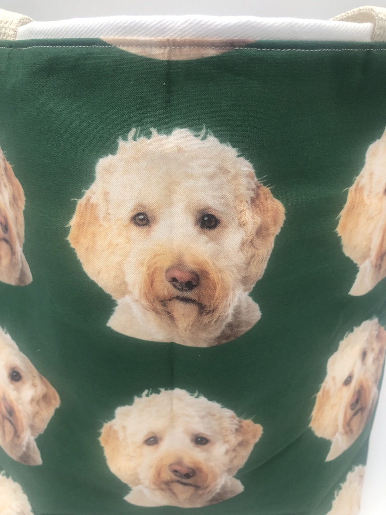Introducing the epitome of canine elegance and artisan craftsmanship: the Handmade Designer Labradoodle Blond/Green Tote Bag. Standing proud at 14 inches tall and stretching 16 inches wide, this exquisite accessory is a tribute to both functionality and style. Crafted with meticulous attention to detail, it is destined to become the darling of your wardrobe. At first glance, your eyes are immediately drawn to the captivating design gracing the exterior of the tote. Adorning the durable fabric are charming Labradoodle dogs, each one infused with personality and charm. Their playful demeanor brings a touch of whimsy to the bag, making it a conversation starter wherever you go. But beauty is not merely skin-deep. This Labradoodle Blond/Green tote bag boasts functionality as impressive as its aesthetics. The exterior fabric, carefully chosen for its durability and resilience, ensures that your belongings remain secure and protected during your travels. Meanwhile, the spacious interior, lined with 100 percent cotton white twill, provides a soft and luxurious sanctuary for your essentials. As your fingers trace the contours of the bag, you’ll appreciate the thoughtful details woven into its construction. The one and one-half-inch-wide natural cotton strap, meticulously stitched to perfection, offers both comfort and durability, effortlessly accommodating the weight of your belongings while adding a touch of rustic charm to the ensemble. Whether you’re running errands around town or embarking on a weekend getaway, this Labradoodle Blond/Green tote bag is your steadfast companion. Its generous dimensions provide ample space for everything you need, from daily essentials to unexpected treasures discovered along the way. With each wear, it becomes not just an accessory, but an extension of your unique personality and style. Indulge in the luxury of artisan craftsmanship and canine charm with the Handmade Designer Labradoodle Blond/Green Tote Bag. Impeccably crafted and undeniably chic, it is more than just a bag it’s a statement piece that celebrates the bond between human and hound, encapsulating the joy and companionship that our furry friends bring into our lives. Another product that would complement this dog scarf is the Superdog #1 Dog Scarf.. If you would like. Click here to visit my Etsy Store.