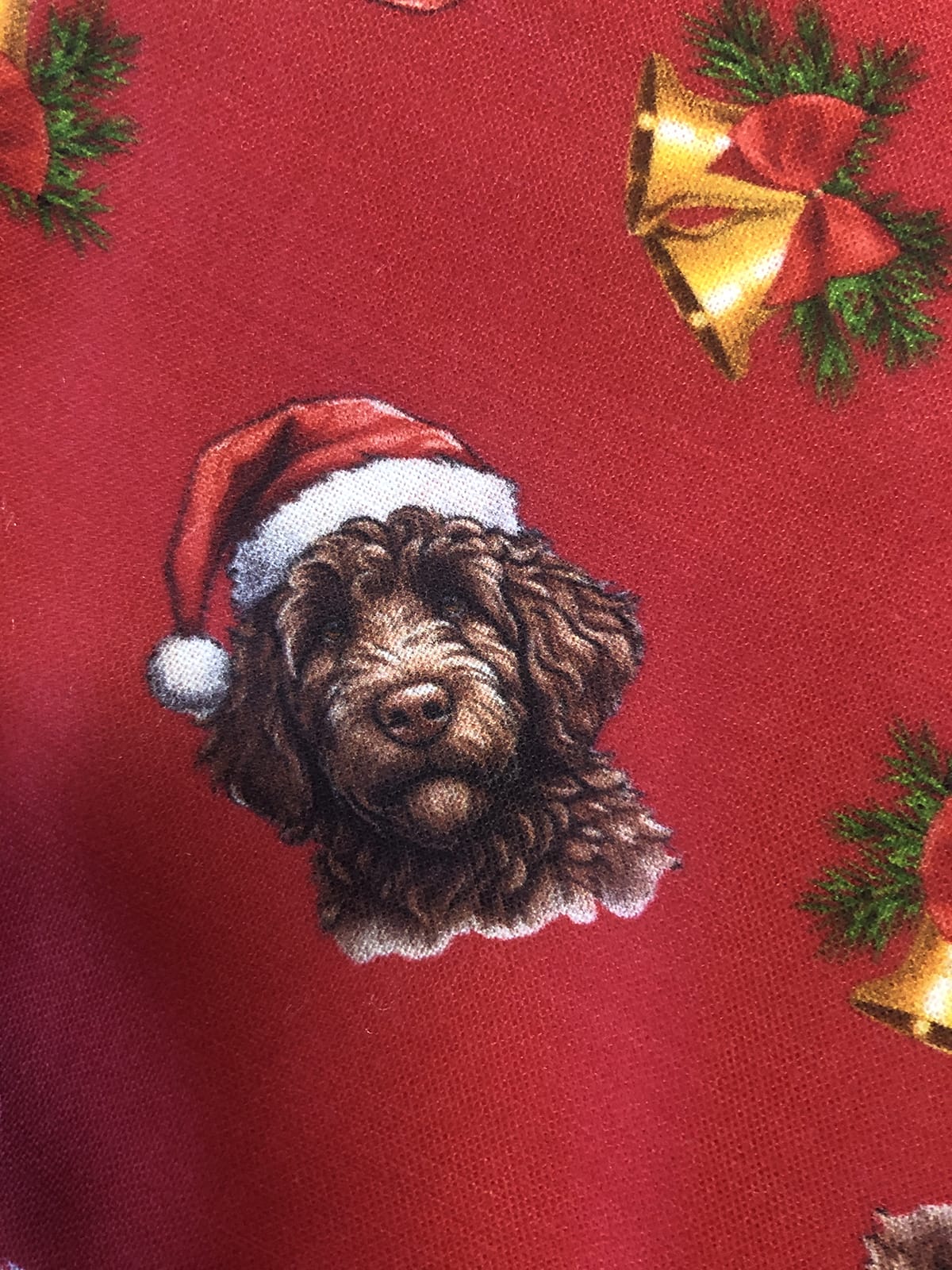 Perfect for dog owners who love to include their pets in the holiday festivities, this stocking is more than just a decorative item; it’s a symbol of the joy and love pets bring to our lives. Give your dog their very own special spot among the Christmas stockings this year and make your holiday season even more magical with the Handmade Designer Labradoodle Chocolate Christmas Stocking with Fleece Lining. Your pet will appreciate the thoughtful gesture, and you’ll love the charming, festive touch it adds to your holiday décor. Another product that would complement this  Christmas Stocking is the Labradoodle Chocolate/Orange Tote Bag. If you would like. Click here to visit my Etsy Store.