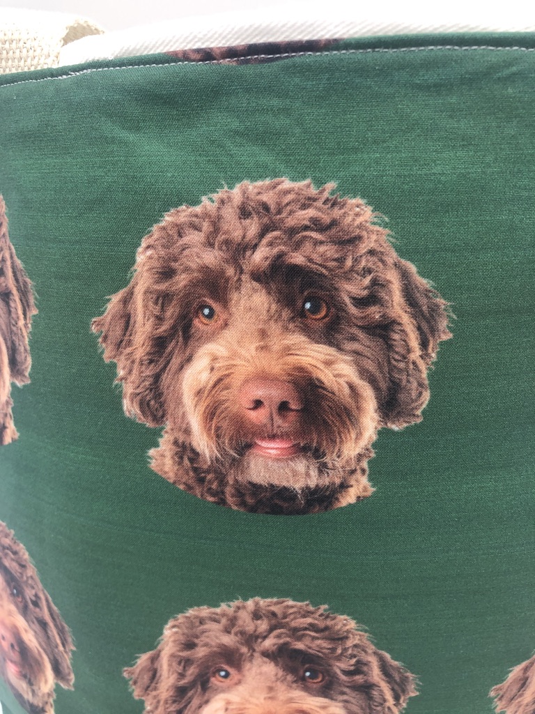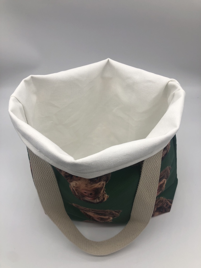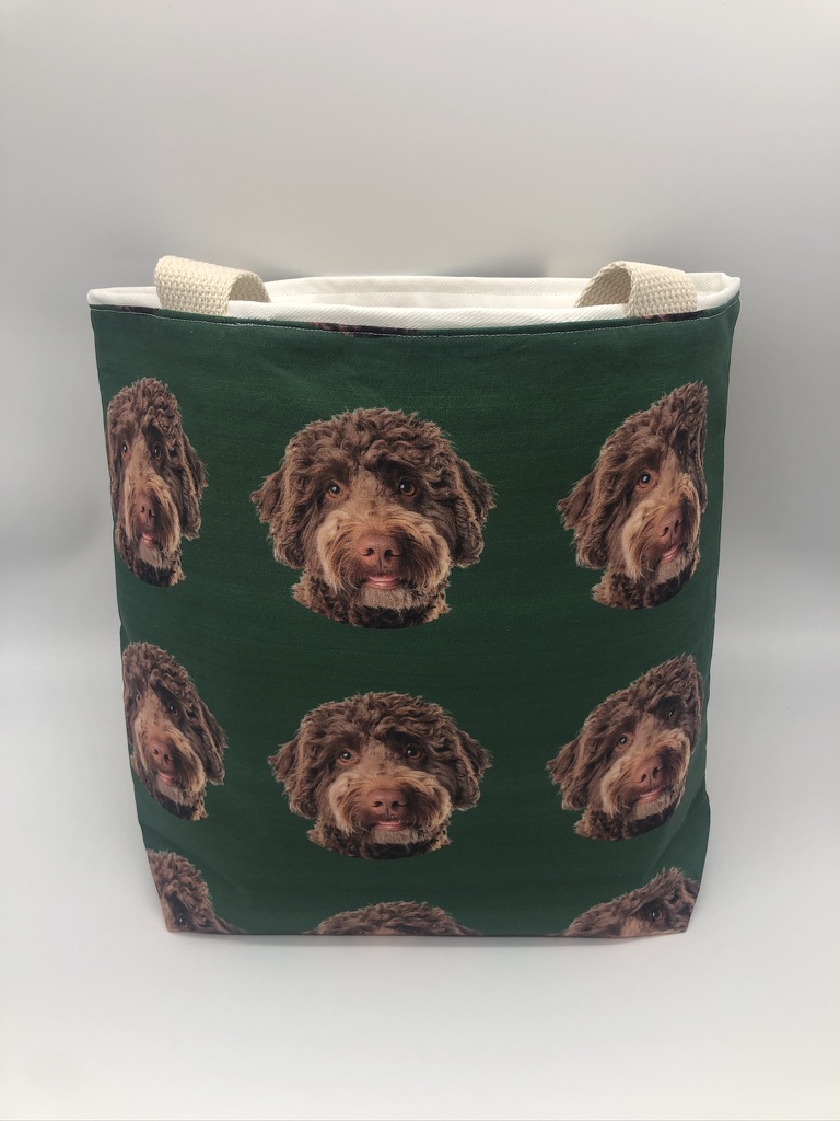 Introducing the epitome of canine elegance and artisan craftsmanship: the Handmade Designer Labradoodle Chocolate/Green Tote Bag. Standing proud at 14 inches tall and stretching 16 inches wide, this exquisite accessory is a tribute to both functionality and style. Crafted with meticulous attention to detail, it is destined to become the darling of your wardrobe. At first glance, your eyes are immediately drawn to the captivating design gracing the exterior of the tote. Adorning the durable fabric are charming Labradoodle dogs, each one infused with personality and charm. Their playful demeanor brings a touch of whimsy to the bag, making it a conversation starter wherever you go. But beauty is not merely skin-deep. This Labradoodle Chocolate/Green tote bag boasts functionality as impressive as its aesthetics. The exterior fabric, carefully chosen for its durability and resilience, ensures that your belongings remain secure and protected during your travels. Meanwhile, the spacious interior, lined with 100 percent cotton white twill, provides a soft and luxurious sanctuary for your essentials. As your fingers trace the contours of the bag, you’ll appreciate the thoughtful details woven into its construction. The one and one-half-inch-wide natural cotton strap, meticulously stitched to perfection, offers both comfort and durability, effortlessly accommodating the weight of your belongings while adding a touch of rustic charm to the ensemble. Whether you’re running errands around town or embarking on a weekend getaway, this Labradoodle Chocolate/Green tote bag is your steadfast companion. Its generous dimensions provide ample space for everything you need, from daily essentials to unexpected treasures discovered along the way. With each wear, it becomes not just an accessory, but an extension of your unique personality and style. Indulge in the luxury of artisan craftsmanship and canine charm with the Handmade Designer Labradoodle Chocolate/Green Tote Bag. Impeccably crafted and undeniably chic, it is more than just a bag it’s a statement piece that celebrates the bond between human and hound, encapsulating the joy and companionship that our furry friends bring into our lives. Another product that would complement this dog scarf is the Superdog #1 Dog Scarf..  If you would like. Click here to visit my Etsy Store.