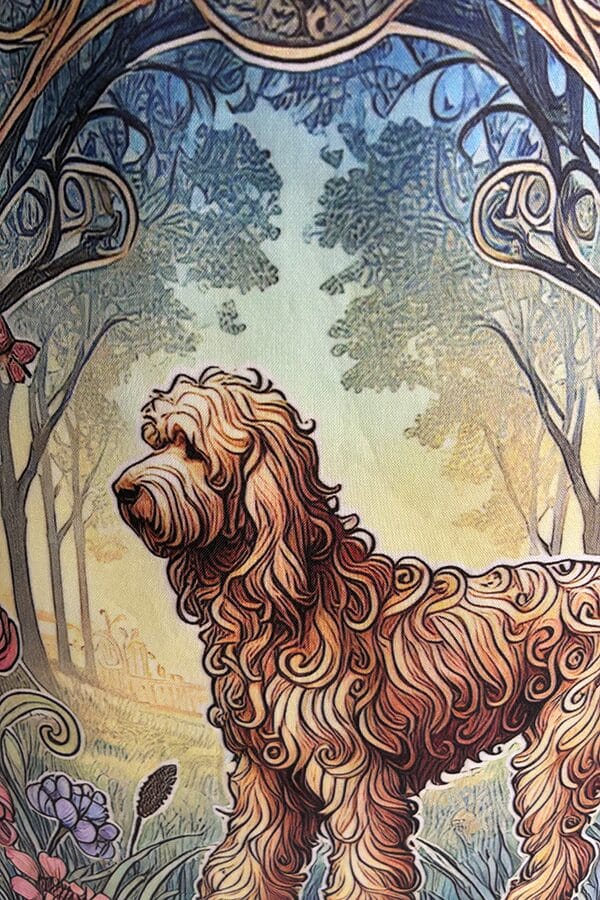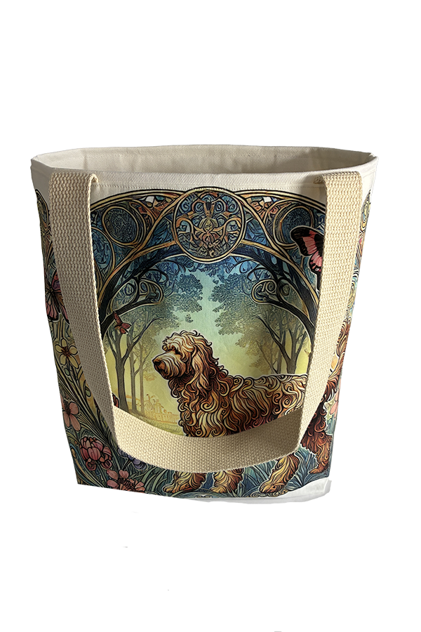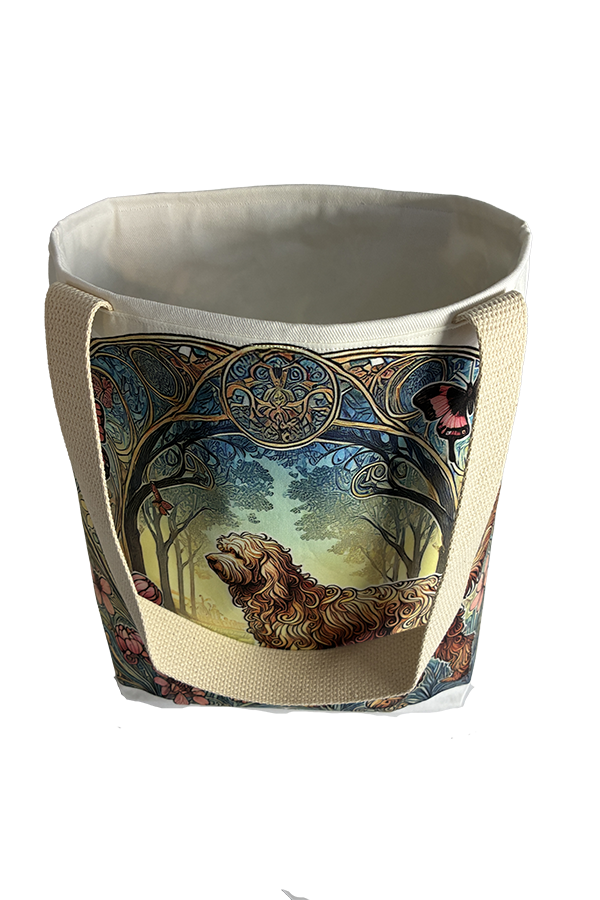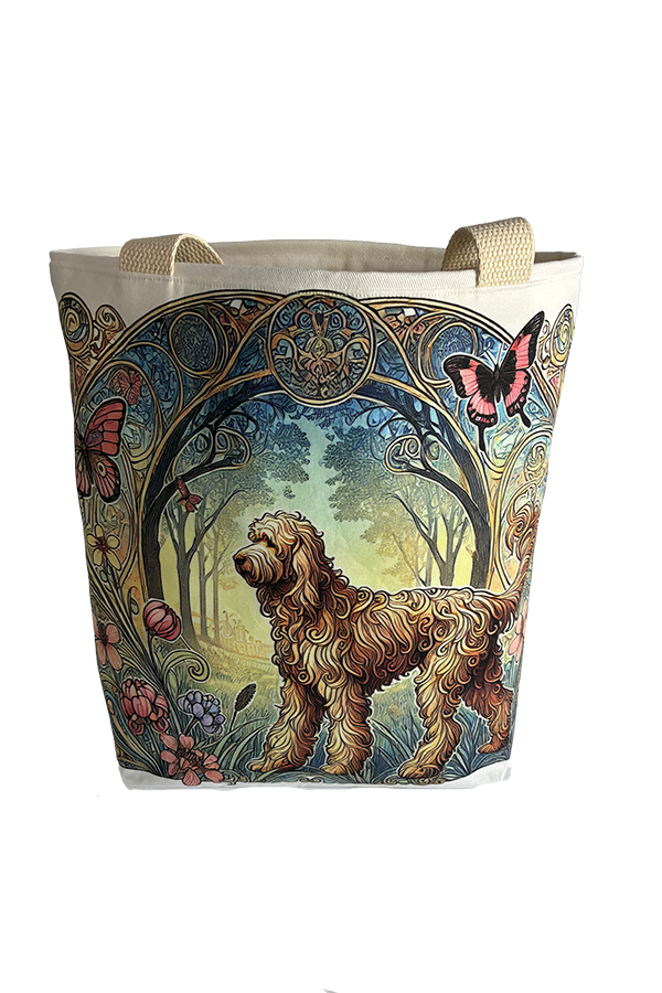 Indulge in the luxury of artisan craftsmanship and canine charm with the Handmade Designer Labradoodle Yellow Nouveau Tote Bag. Impeccably crafted and undeniably chic, it is more than just a bag. It’s a statement piece that celebrates the bond between humans and hounds, encapsulating the joy and companionship that our furry friends bring into our lives. Another product that would complement this tote bag is the  Labradoodle Black Garden Tote Bag. If you would like. Click here to visit my Etsy Store.