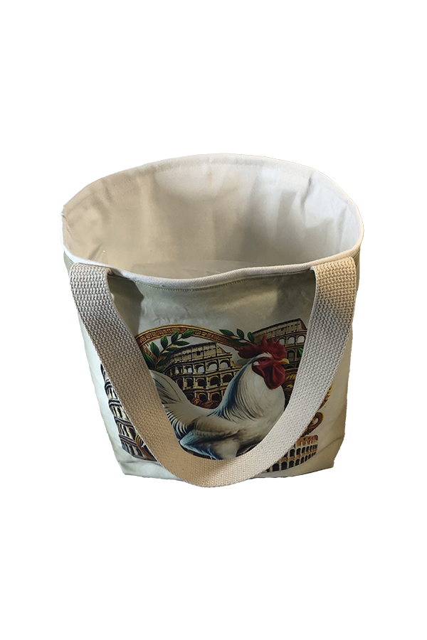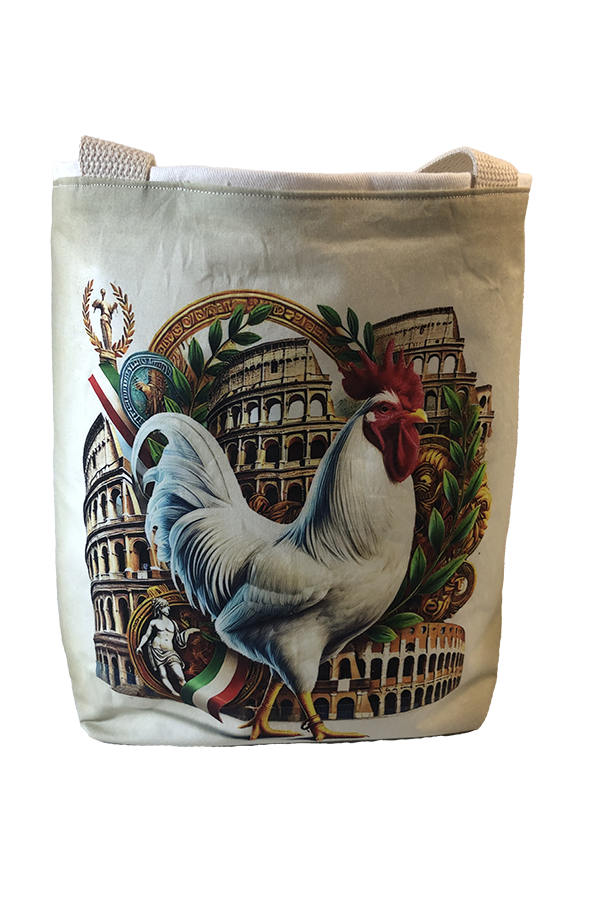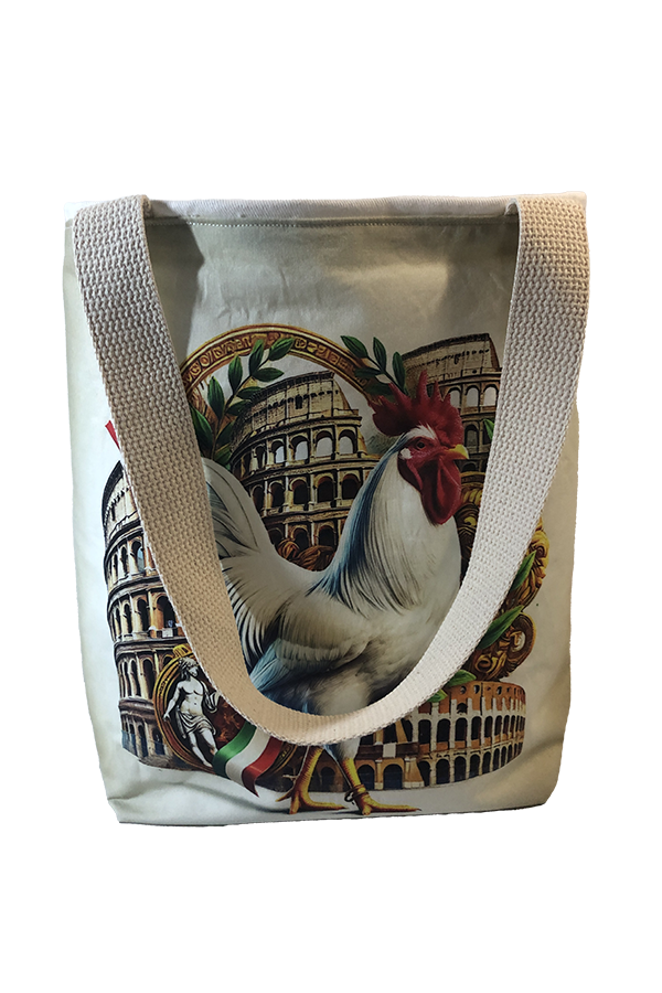 Crafted meticulously, this Handmade Designer Leghorn Heritage tote bag showcases a picture of a majestic show chicken, capturing its elegance and vibrant plumage in stunning detail. The design is printed on an all-cotton outer layer, which is durable and lends a soft, luxurious feel to the bag. The outer fabric is carefully selected to ensure the striking image remains vibrant and eye-catching, making the tote a conversation starter wherever you go.