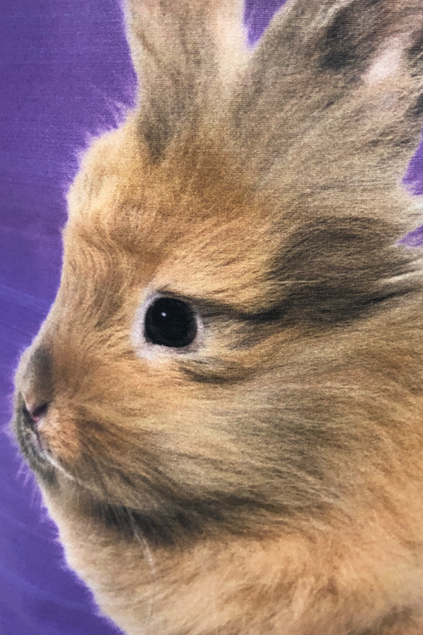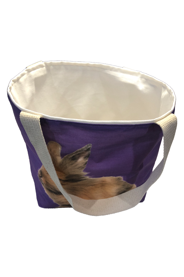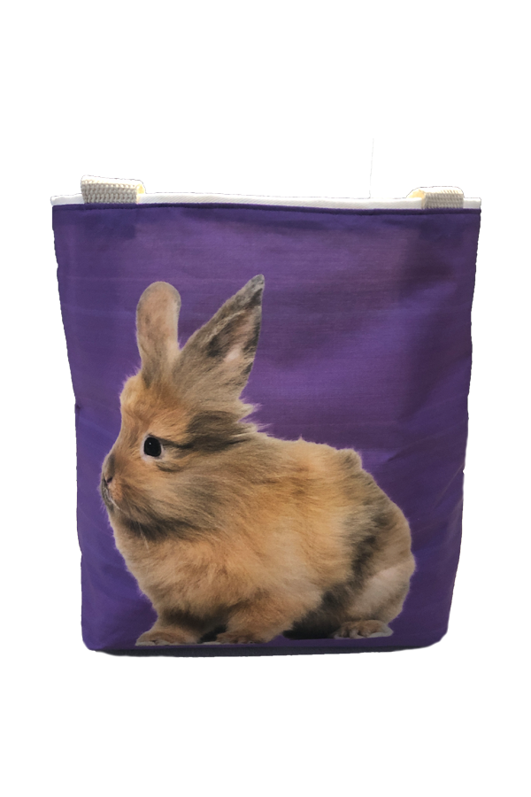 The bag’s exterior is crafted from premium designer cotton fabric, featuring an adorable bunny pattern that captures the essence of springtime charm. The bunnies, depicted in real-life poses, bring a cheerful and nature-inspired aesthetic to the bag. The colors are a harmonious mix of soft pastels and earthy tones, making this Handmade Designer Lionhead #2 Purple Tote Bag both eye-catching and versatile, suitable for pairing with a wide range of outfits.