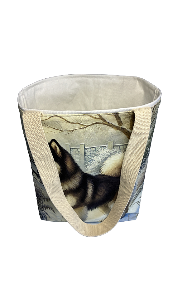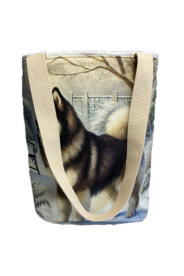 Treat yourself to a one-of-a-kind experience with our handmade designer Malamute Winter Garden Tote Bag– a blend of craftsmanship, functionality, tradition, and cultural inspiration that transcends the ordinary.