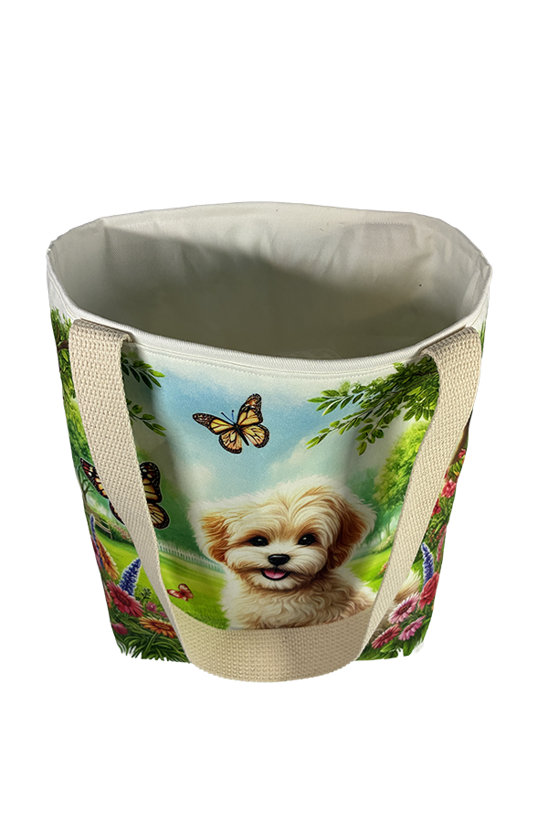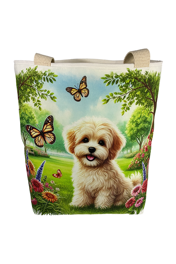 But beauty is not merely skin-deep. This Handmade Designer Maltipoo Park Tote Bag boasts functionality as impressive as its aesthetics. The exterior fabric, carefully selected for its durability and resilience, keeps your belongings secure and protected during your travels.