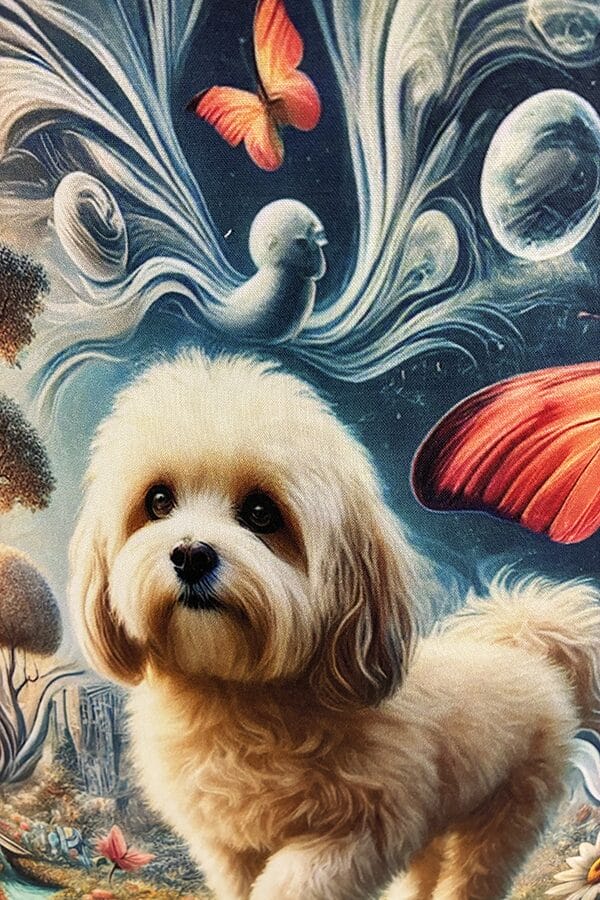 Indulge in the luxury of artisan craftsmanship and canine charm with the Handmade Designer Maltipoo Surrealism Tote Bag. Impeccably crafted and undeniably chic, it is more than just a bag. It’s a statement piece that celebrates the bond between humans and hounds, encapsulating the joy and companionship that our furry friends bring into our lives. Another product that would complement this tote bag is the  Maltipoo Garden Tote Bag. If you would like. Click here to visit my Etsy Store.