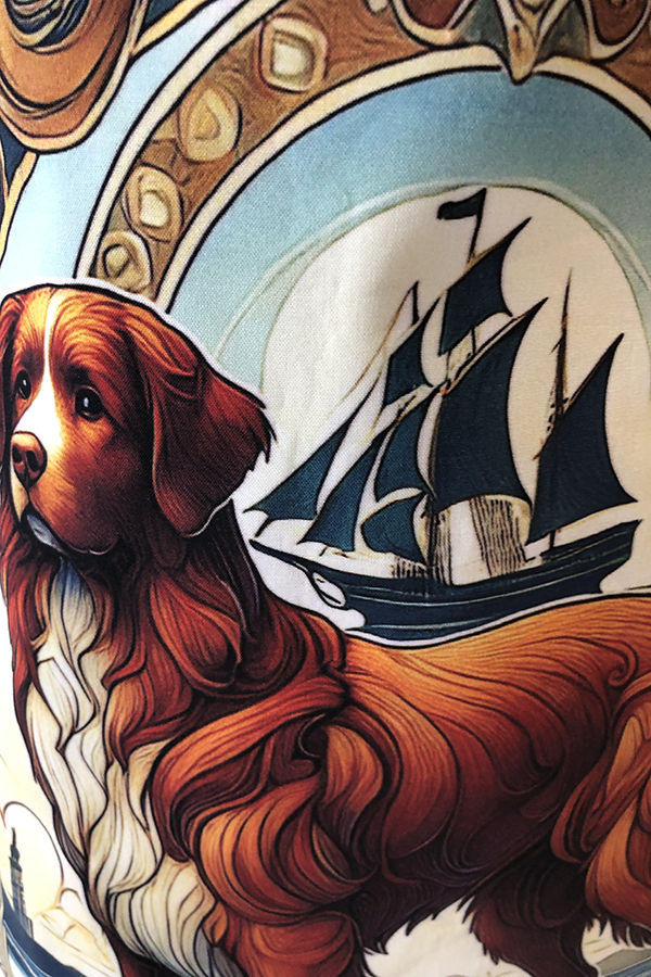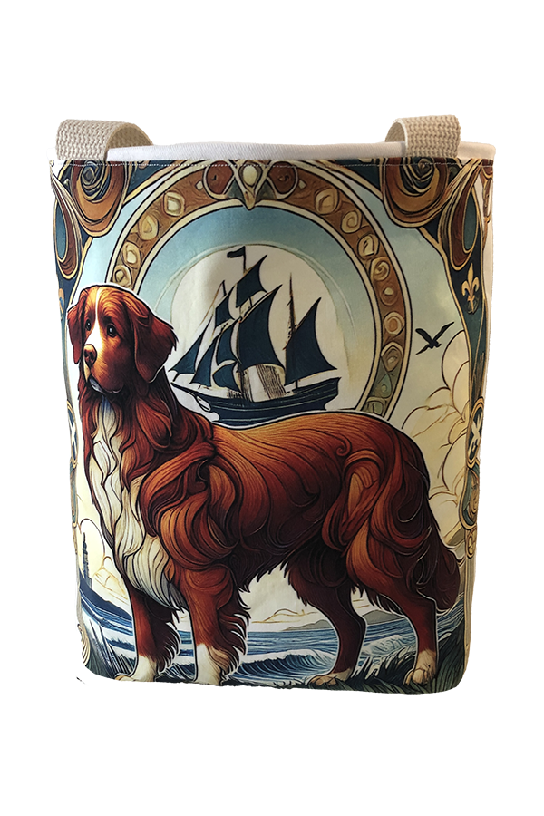 Indulge in the luxury of artisan craftsmanship and canine charm with the Handmade Designer Toller Nouveau Tote Bag. Impeccably crafted and undeniably chic, it is more than just a bag. It’s a statement piece that celebrates the bond between humans and hounds, encapsulating the joy and companionship that our furry friends bring into our lives. Another product that would complement this tote bag is the .Nova Scotia Duck Tolling Retriever “Retrieving” Tote Bag If you would like. Click here to visit my Etsy Store.