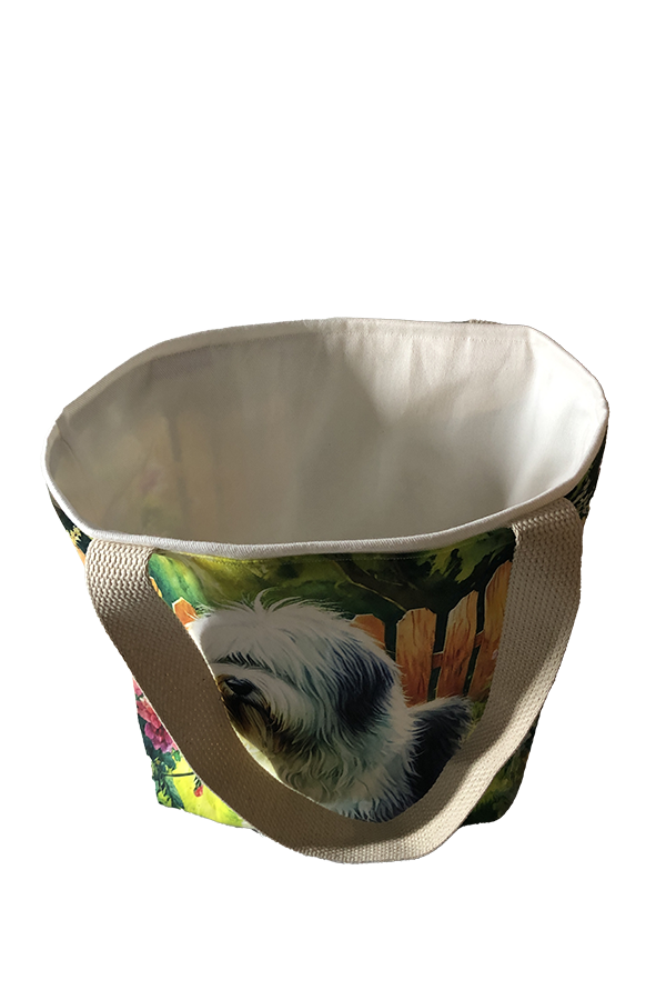 Treat yourself to a one-of-a-kind experience with our handmade designer English Sheepdog Flowers Tote Bag– a blend of craftsmanship, functionality, and cultural inspiration that transcends the ordinary.