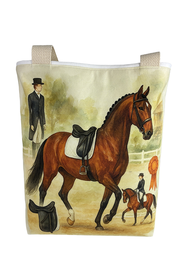 Indulge in the luxury of artisan craftsmanship and equine charm with the Handmade Designer Oldenburg Bay Dressage Tote Bag. Impeccably crafted and undeniably chic, it is more than just a bag; it’s a statement piece that celebrates the bond between humans and horses, encapsulating the joy and companionship that our majestic friends bring into our lives. Another product that would complement this tote bag is the Oldenburg Black Dressage Tote Bag. If you would, Click here to visit my Etsy Store.