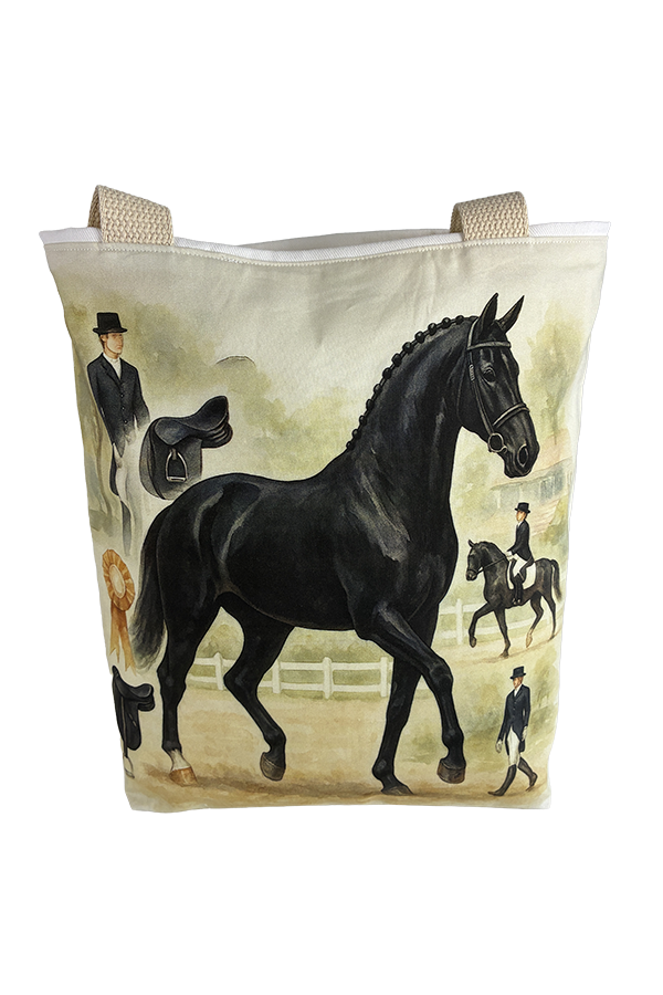 Indulge in the luxury of artisan craftsmanship and equine charm with the Handmade Designer Oldenburg Black Dressage Tote Bag. Impeccably crafted and undeniably chic, it is more than just a bag; it’s a statement piece that celebrates the bond between humans and horses, encapsulating the joy and companionship that our majestic friends bring into our lives. Another product that would complement this tote bag is the Oldenburg Grey Galloping Tote Bag. If you would, Click here to visit my Etsy Store.
