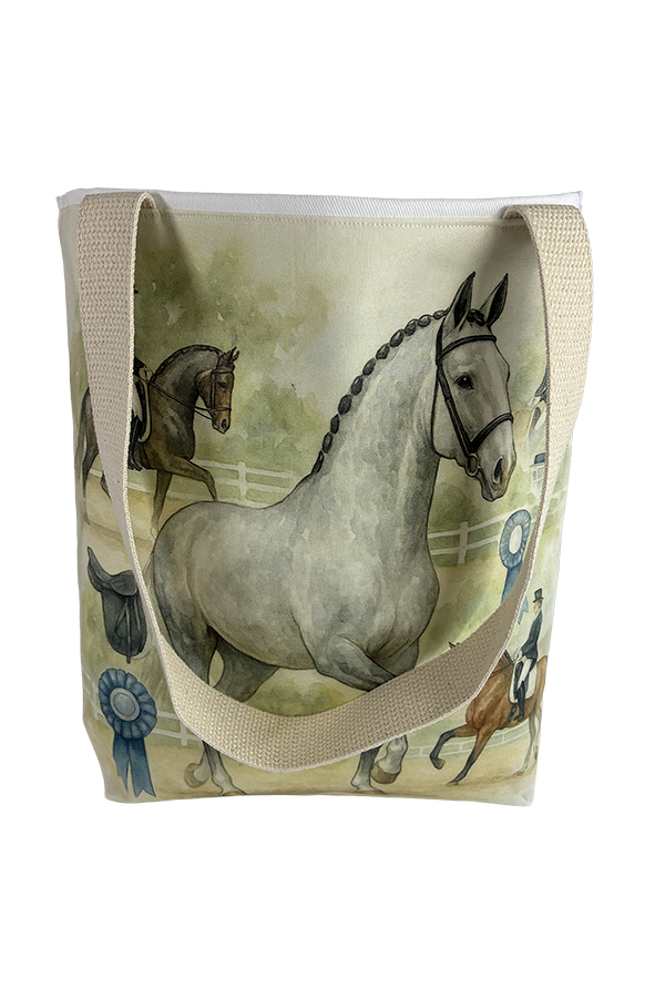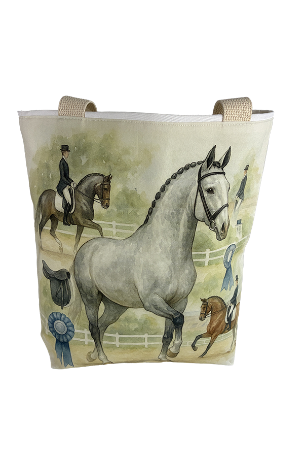 Indulge in the luxury of artisan craftsmanship and equine charm with the Handmade Designer Oldenburg Grey Dressage Tote Bag. Impeccably crafted and undeniably chic, it is more than just a bag; it’s a statement piece that celebrates the bond between humans and horses, encapsulating the joy and companionship that our majestic friends bring into our lives. Another product that would complement this tote bag is the  Oldenburg Bay Dressage Tote Bag. If you would, Click here to visit my Etsy Store.