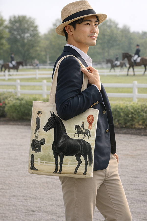 Dutch Warmblood Black Dressage Tote Bag