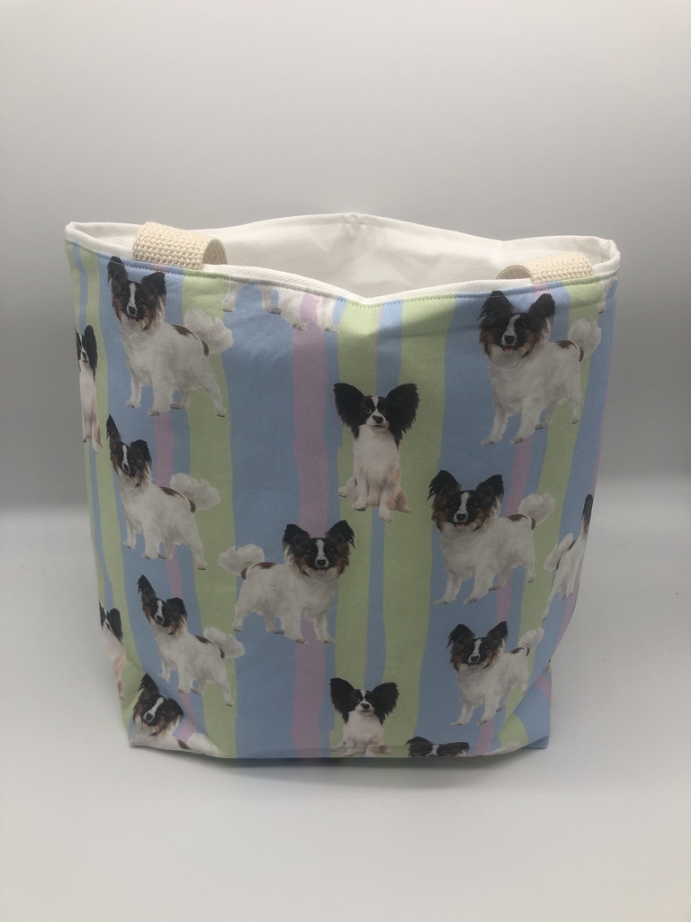 This Papillon #2 Tote Bag is handmade with Papillon-themed designer fabric and is lined with white cotton twill. At Beau Designs, I create hand-detailed products with natural tones, organic textures, and high-end materials. Another product that would compliment this Papillon #2 Tote Bag is the Columbus Day Dog Scarf.  If you would like, Click here to visit my Etsy store.