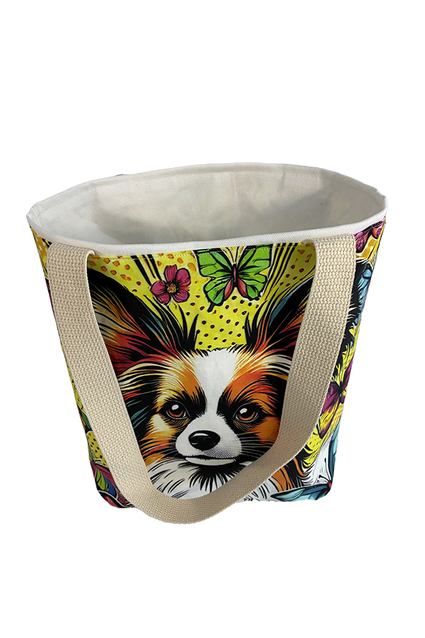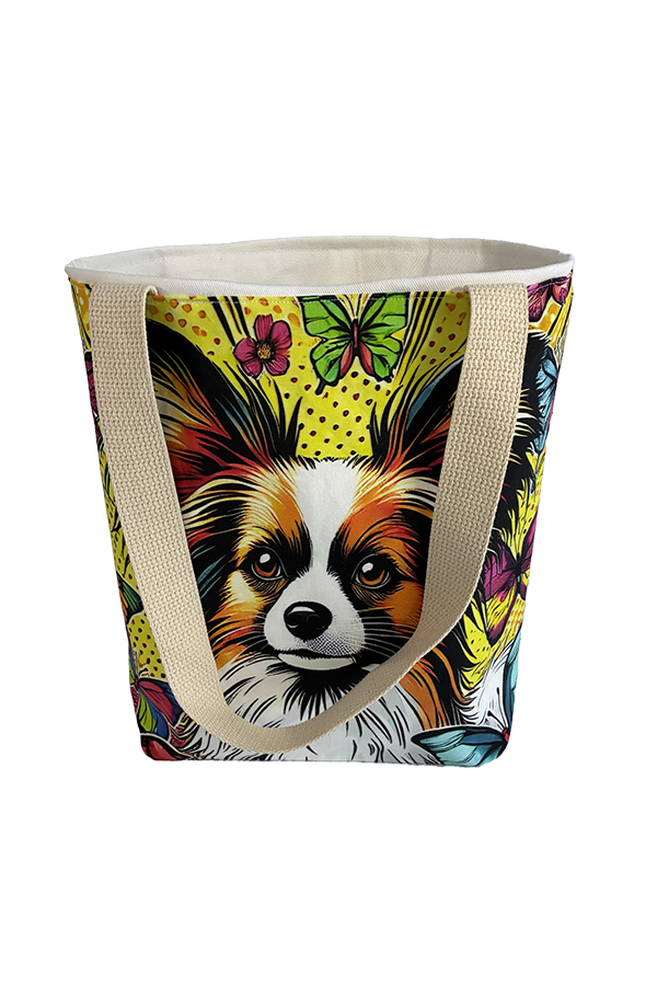 Indulge in the luxury of artisan craftsmanship and canine charm with the Handmade Designer Papillon PopArt Tote Bag. Impeccably crafted and undeniably chic, it is more than just a bag. It’s a statement piece that celebrates the bond between humans and hounds, encapsulating the joy and companionship that our furry friends bring into our lives. Another product that would complement this tote bag is the  Papillon Garden Tote Bag. If you would like. Click here to visit my Etsy Store.