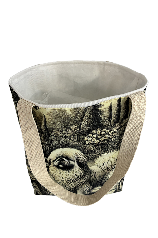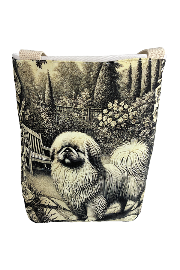 Introducing the epitome of canine elegance and artisan craftsmanship: the Handmade Designer Pekingese Engraving Tote Bag. Standing proud at 14 inches tall and stretching 16 inches wide, this exquisite accessory is a tribute to functionality and style. Crafted with meticulous attention to detail, it will become your wardrobe’s darling. At first glance, your eyes are immediately drawn to the captivating design gracing the tote’s exterior. Your pet is displayed in a beautiful scene with personality and charm. Their playful demeanor brings a touch of whimsy to the bag, making it a conversation starter wherever you go.