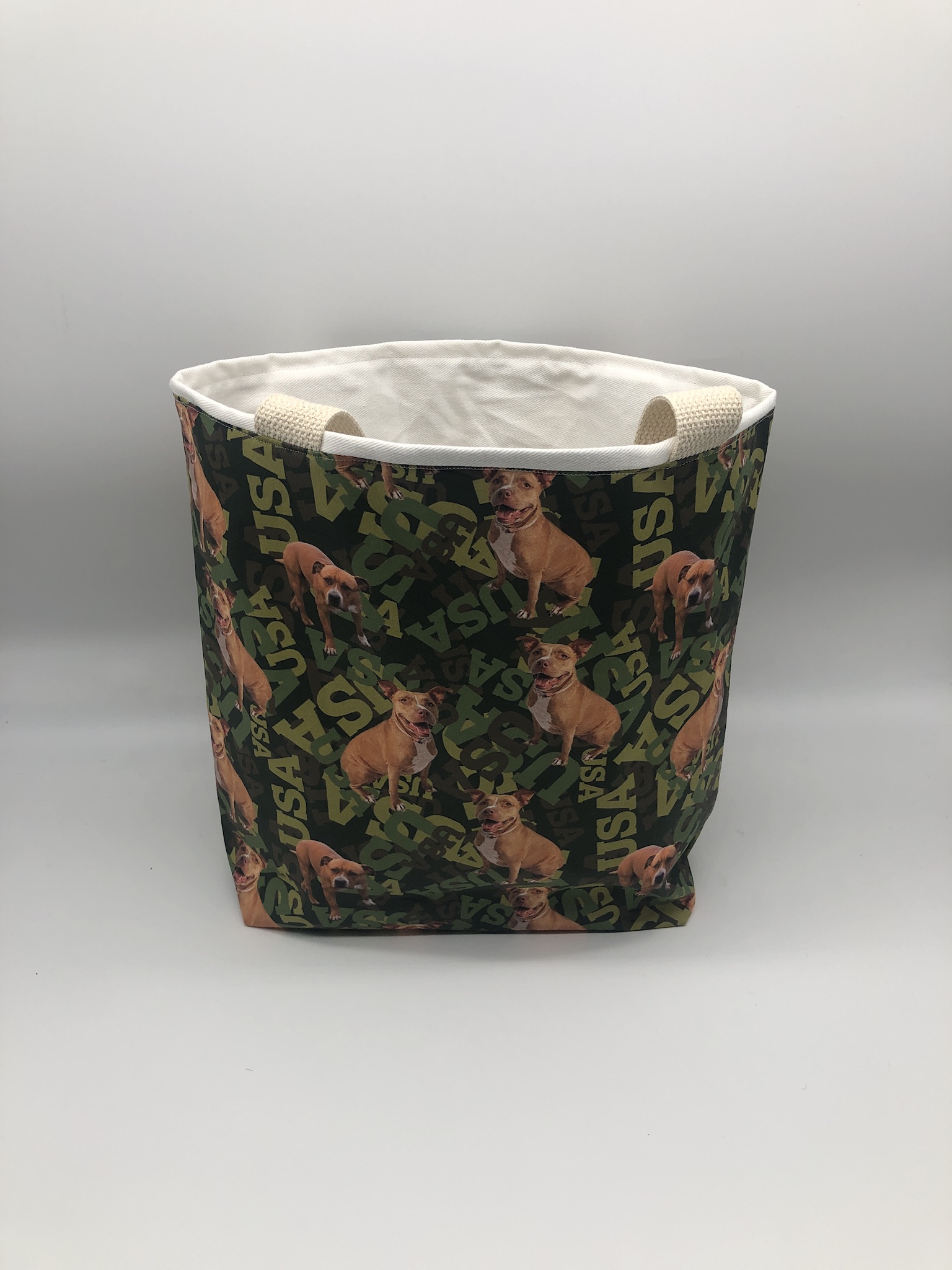 This Pit Bull #2 Tote Bag is handmade with Pit Bull-themed designer fabric and is lined with white cotton twill. At Beau Designs, I create hand-detailed products with natural tones, organic textures, and high-end materials. Another product that would compliment this Pit Bull #2 Tote Bag is the Independence Day Dog Scarf.  If you would like, Click here to visit my Etsy store.