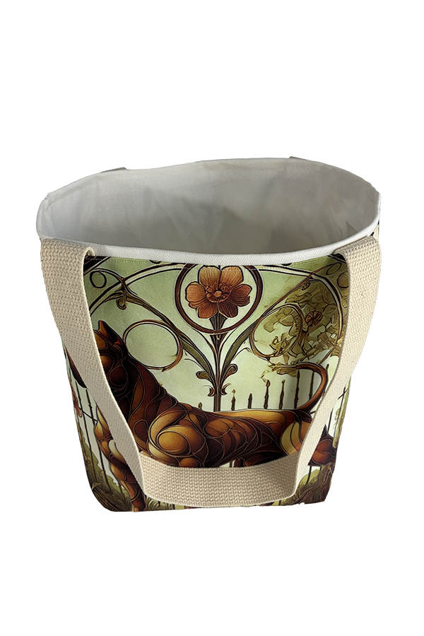 Introducing the epitome of canine elegance and artisan craftsmanship: the Handmade Designer Pit Bull Nouveau Tote Bag. Standing proud at 14 inches tall and stretching 16 inches wide, this exquisite accessory is a tribute to functionality and style. Crafted with meticulous attention to detail, it will become your wardrobe’s darling. At first glance, your eyes are immediately drawn to the captivating design gracing the tote’s exterior. Your pet is displayed in a beautiful scene with personality and charm. Their playful demeanor brings a touch of whimsy to the bag, making it a conversation starter wherever you go.