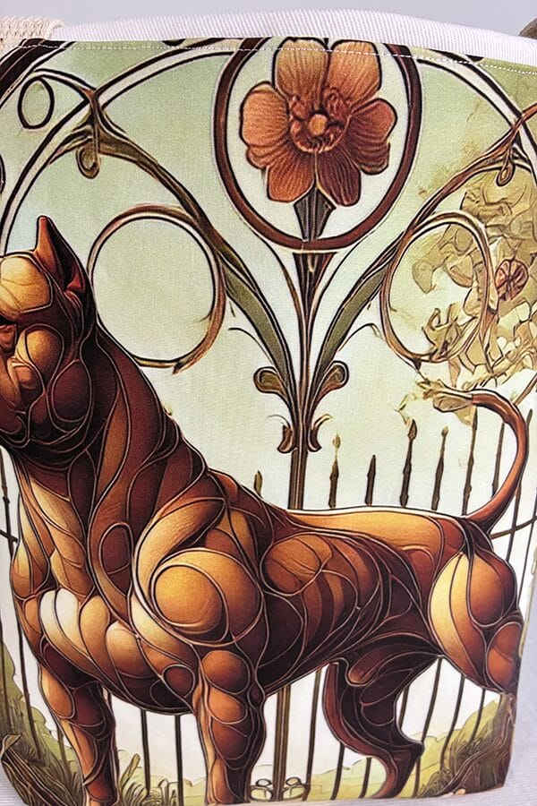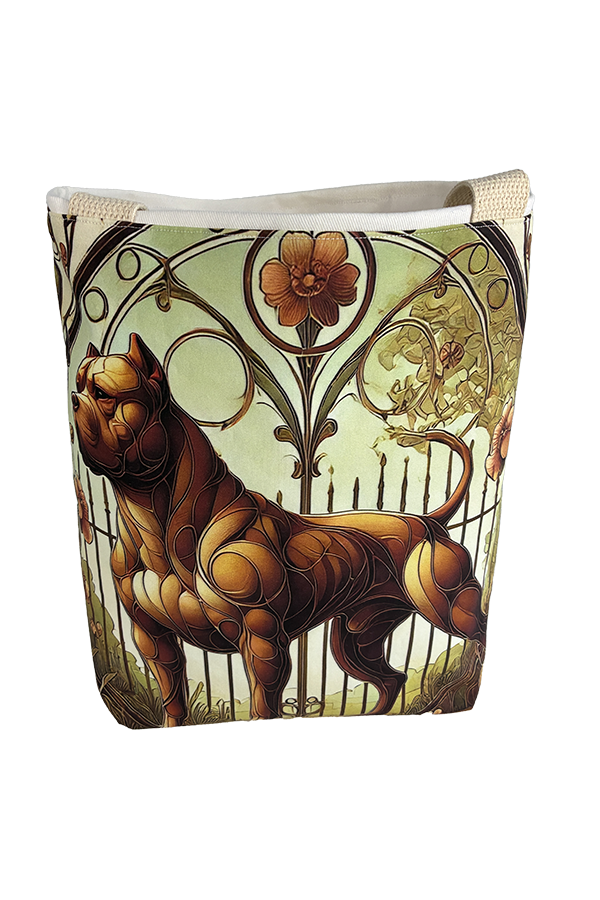 Indulge in the luxury of artisan craftsmanship and canine charm with the Handmade Designer Pit Bull Nouveau Tote Bag. Impeccably crafted and undeniably chic, it is more than just a bag. It’s a statement piece that celebrates the bond between humans and hounds, encapsulating the joy and companionship that our furry friends bring into our lives. Another product that would complement this tote bag is the  Pit Bull Pop-Art Tote Bag. If you would like. Click here to visit my Etsy Store.