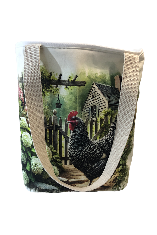 We are introducing a unique accessory for the discerning fashionista: our Handmade Designer Plymouth Rock Garden Tote Bag. This exquisite tote combines artistry and functionality, making it a standout piece in any collection.