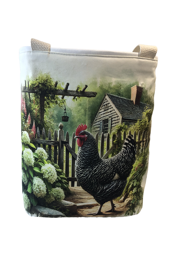 Crafted meticulously, this Handmade Designer Plymouth Rock Garden tote bag showcases a picture of a majestic show chicken, capturing its elegance and vibrant plumage in stunning detail. The design is printed on an all-cotton outer layer, which is durable and lends a soft, luxurious feel to the bag. The outer fabric is carefully selected to ensure the striking image remains vibrant and eye-catching, making the tote a conversation starter wherever you go.