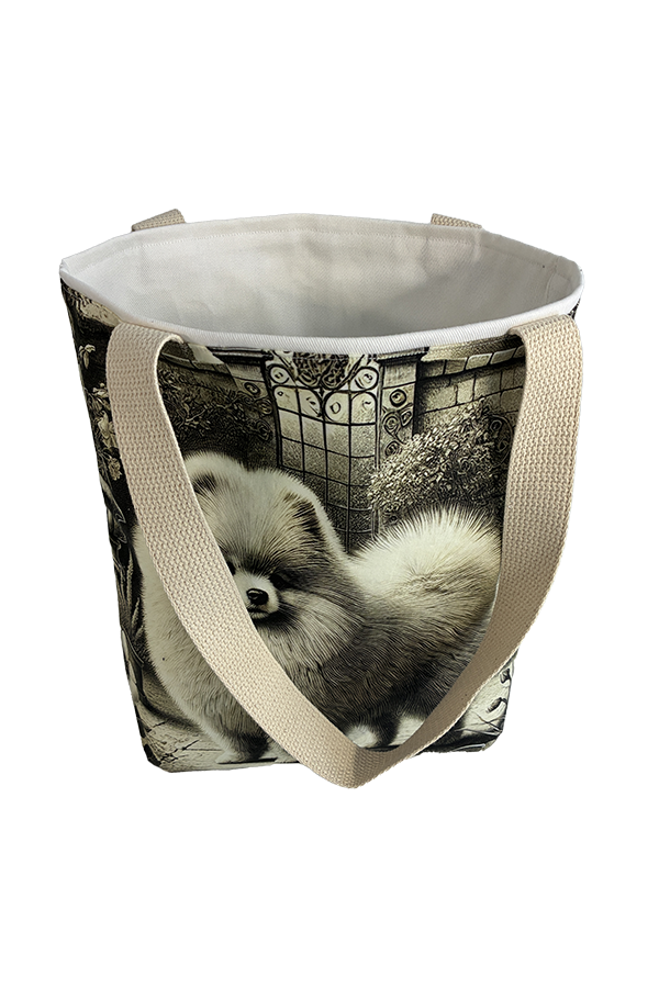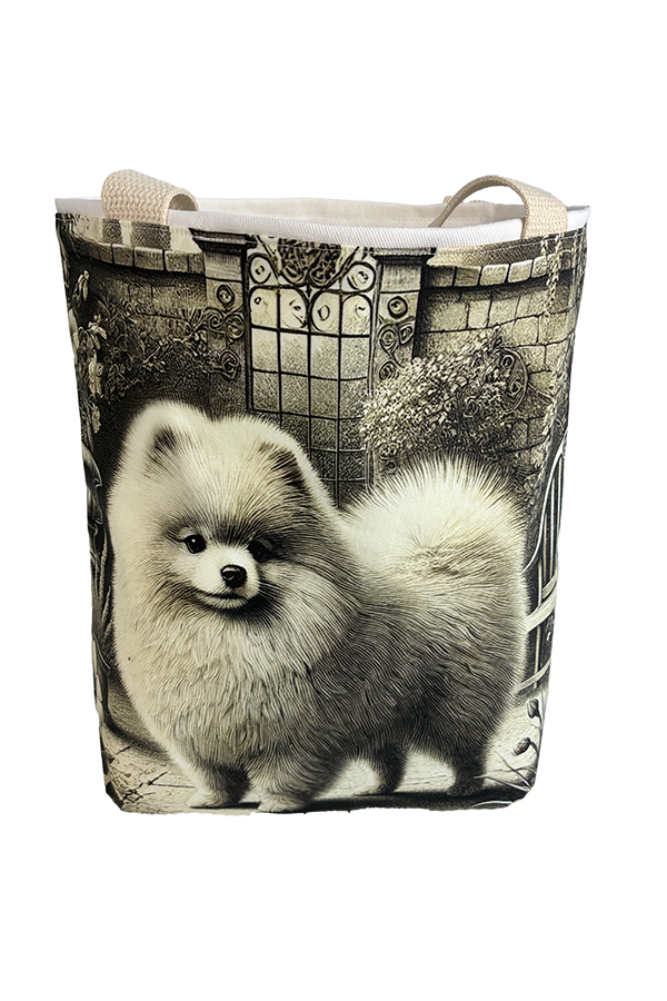 Introducing the epitome of canine elegance and artisan craftsmanship: the Handmade Designer Pomeranian Engraving Tote Bag. Standing proud at 14 inches tall and stretching 16 inches wide, this exquisite accessory is a tribute to functionality and style. Crafted with meticulous attention to detail, it will become your wardrobe’s darling. At first glance, your eyes are immediately drawn to the captivating design gracing the tote’s exterior. Your pet is displayed in a beautiful scene with personality and charm. Their playful demeanor brings a touch of whimsy to the bag, making it a conversation starter wherever you go.