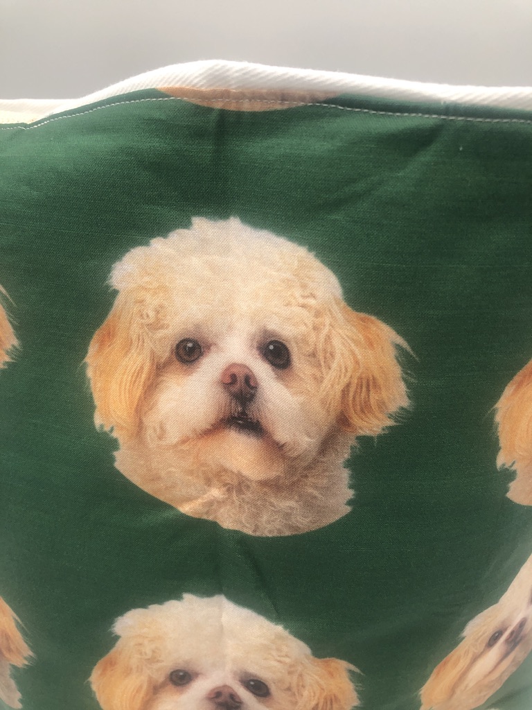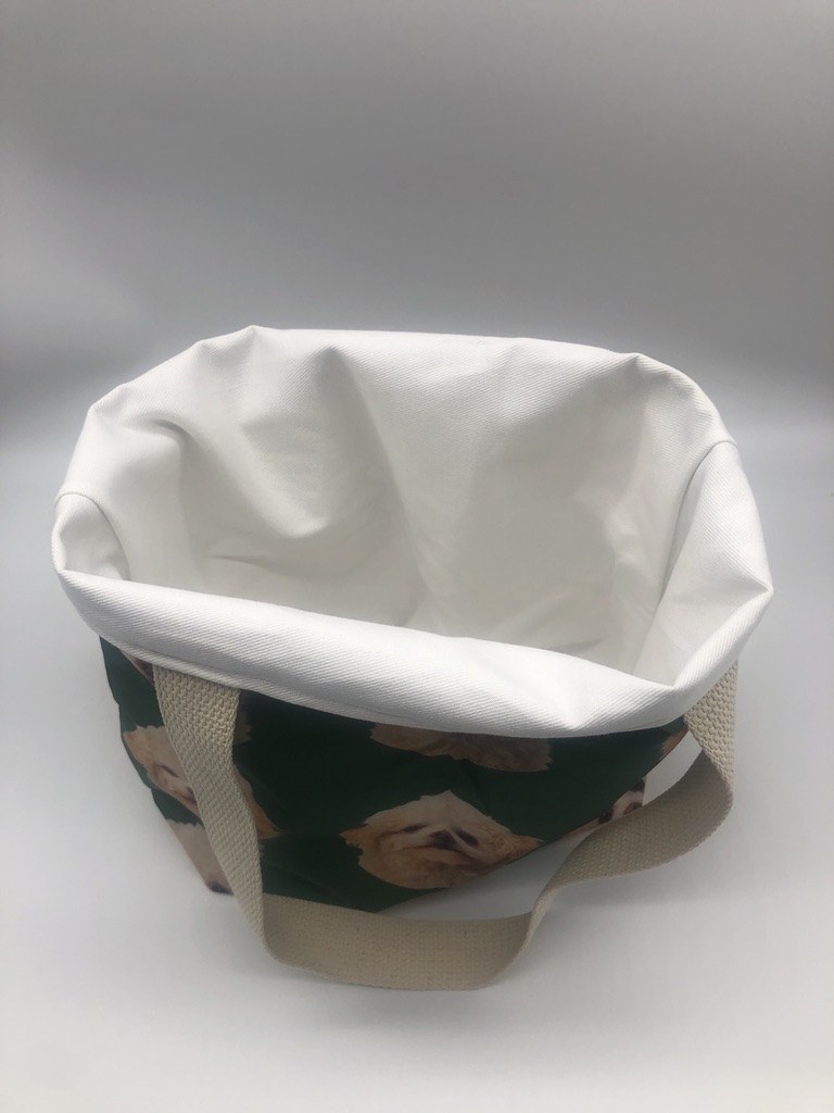 Introducing the epitome of canine elegance and artisan craftsmanship: the Handmade Designer Poochon Green Tote Bag. Standing proud at 14 inches tall and stretching 16 inches wide, this exquisite accessory is a tribute to both functionality and style. Crafted with meticulous attention to detail, it is destined to become the darling of your wardrobe. At first glance, your eyes are immediately drawn to the captivating design gracing the exterior of the tote. Adorning the durable fabric are charming Poochon dogs, each one infused with personality and charm. Their playful demeanor brings a touch of whimsy to the bag, making it a conversation starter wherever you go. But beauty is not merely skin-deep. This Poochon Green tote bag boasts functionality as impressive as its aesthetics. The exterior fabric, carefully chosen for its durability and resilience, ensures that your belongings remain secure and protected during your travels. Meanwhile, the spacious interior, lined with 100 percent cotton white twill, provides a soft and luxurious sanctuary for your essentials. As your fingers trace the contours of the bag, you’ll appreciate the thoughtful details woven into its construction. The one and one-half-inch-wide natural cotton strap, meticulously stitched to perfection, offers both comfort and durability, effortlessly accommodating the weight of your belongings while adding a touch of rustic charm to the ensemble. Whether you’re running errands around town or embarking on a weekend getaway, this Poochon Green tote bag is your steadfast companion. Its generous dimensions provide ample space for everything you need, from daily essentials to unexpected treasures discovered along the way. With each wear, it becomes not just an accessory, but an extension of your unique personality and style. Indulge in the luxury of artisan craftsmanship and canine charm with the Handmade Designer Poochon Green Tote Bag. Impeccably crafted and undeniably chic, it is more than just a bag it’s a statement piece that celebrates the bond between human and hound, encapsulating the joy and companionship that our furry friends bring into our lives. Another product that would complement this dog scarf is the Superdog #1 Dog Scarf..  If you would like. Click here to visit my Etsy Store.