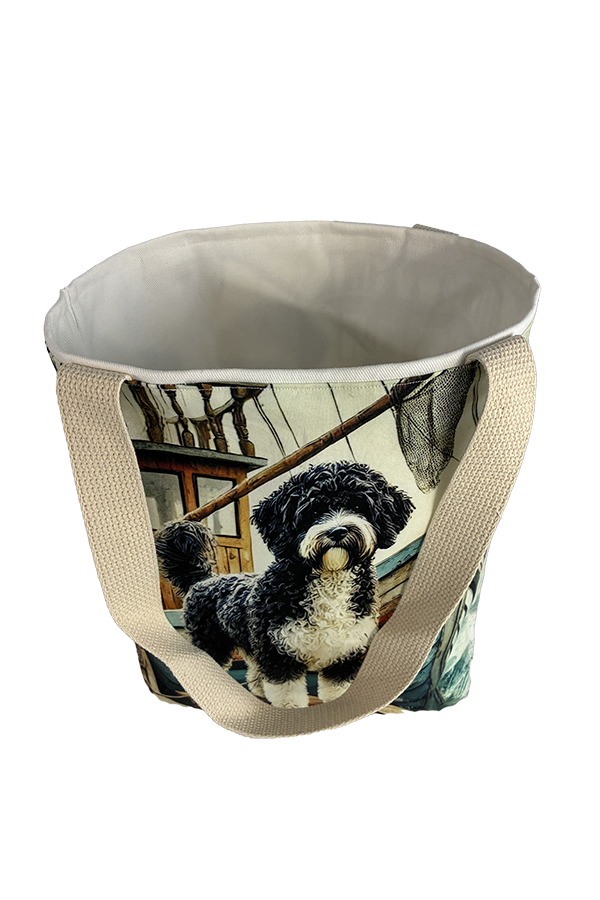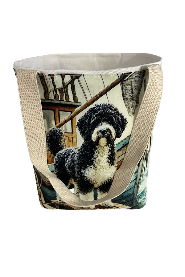 But beauty is not merely skin-deep. This Handmade Designer Portuguese Waterdog Boat Tote Bag boasts functionality as impressive as its aesthetics. The exterior fabric, carefully selected for its durability and resilience, keeps your belongings secure and protected during your travels.