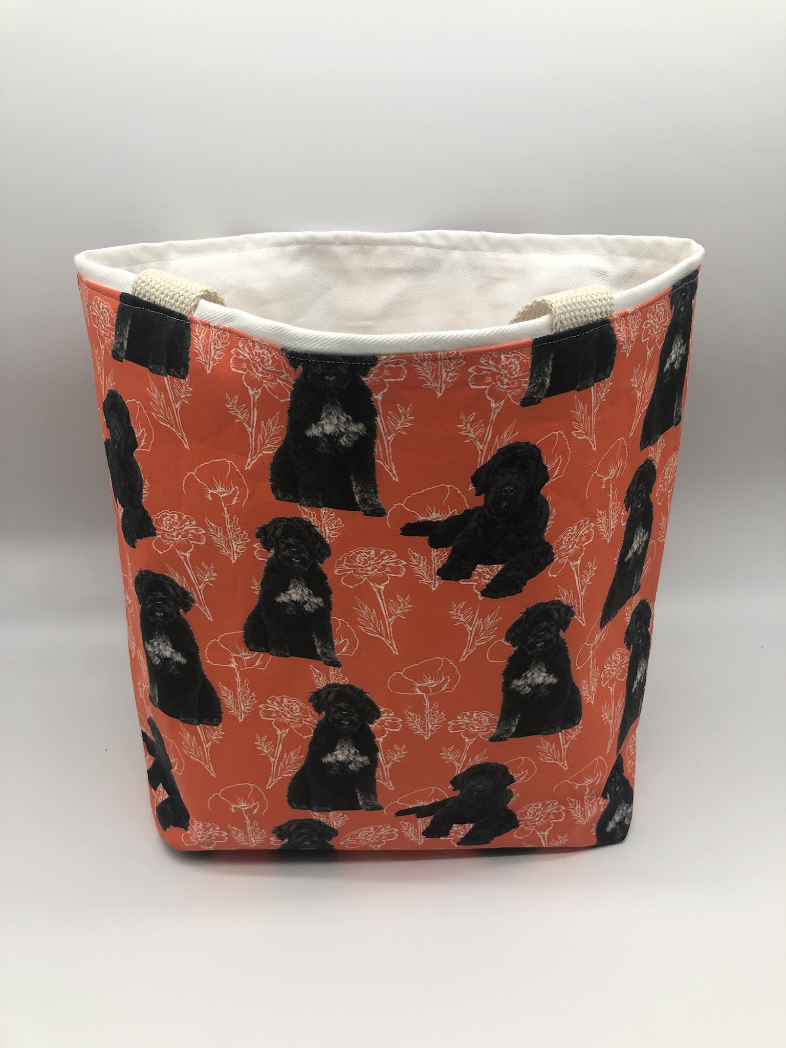This Portuguese Waterdog #1 Tote Bag is handmade with Portuguese Water Dog-themed designer fabric and is lined with white cotton twill. At Beau Designs, I create hand-detailed products with natural tones, organic textures, and high-end materials. Another product complimenting this Portuguese Water Dog #1 Tote Bag is the Father’s Day Dog Scarf. If you would like, Click here to visit my Etsy store.