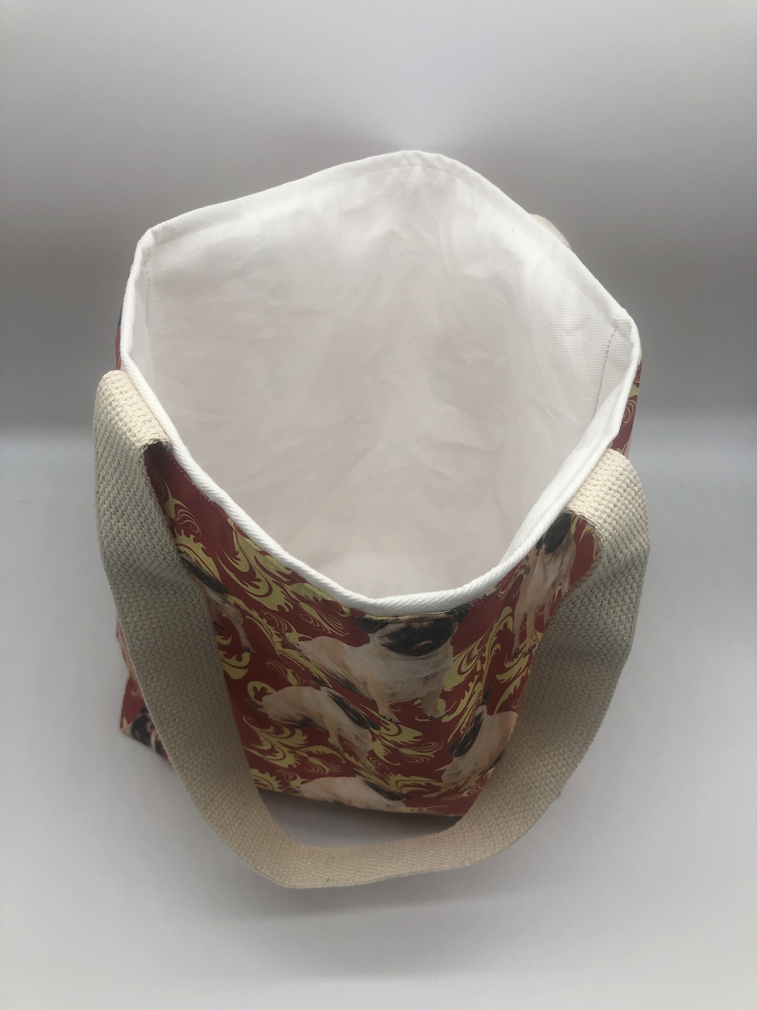 This Pug #1 Tote Bag is handmade with Pug-themed designer fabric and is lined with white cotton twill. At Beau Designs, I create hand-detailed products with natural tones, organic textures, and high-end materials. Another product that would compliment this Pug #1 Tote Bag is the Christmas #1 Dog Scarf.  If you would like, Click here to visit my Etsy store.
