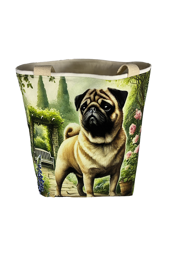 But beauty is not merely skin-deep. This Handmade Designer Pug Garden Tote Bag boasts functionality as impressive as its aesthetics. The exterior fabric, carefully selected for its durability and resilience, keeps your belongings secure and protected during your travels.