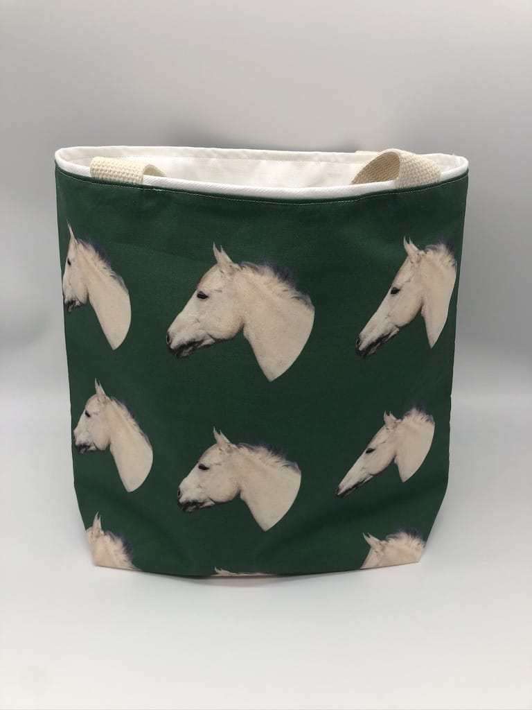 Introducing the epitome of equine elegance and artisan craftsmanship: the Handmade Designer Quarter Horse #1 Tote Bag. Standing proud at 14 inches tall and stretching 16 inches wide, this exquisite accessory is a tribute to both functionality and style. Crafted with meticulous attention to detail, it is destined to become the darling of your wardrobe. At first glance, your eyes are immediately drawn to the captivating design gracing the exterior of the tote. Adorning the durable fabric are elegant horse graphics, each one infused with personality and charm. Their stately demeanor brings a touch of whimsy to the bag, making it a conversation starter wherever you go. But beauty is not merely skin-deep. This Handmade Designer Quarter Horse #1 Tote Bag boasts functionality as impressive as its aesthetics. The exterior fabric, carefully chosen for its durability and resilience, ensures that your belongings remain secure and protected during your travels. Meanwhile, the spacious interior, lined with 100 percent cotton white twill, provides a soft and luxurious sanctuary for your essentials. As your fingers trace the contours of the bag, you’ll appreciate the thoughtful details woven into its construction. The one and one-half-inch-wide natural cotton strap, meticulously stitched to perfection, offers both comfort and durability, effortlessly accommodating the weight of your belongings while adding a touch of rustic charm to the ensemble. Whether you’re running errands around town or embarking on a weekend getaway, this handmade Designer Quarter Horse #1 Tote Bag is your steadfast companion. Its generous dimensions provide ample space for everything you need, from daily essentials to unexpected treasures discovered along the way. With each wear, it becomes not just an accessory, but an extension of your unique personality and style. Indulge in the luxury of artisan craftsmanship and equine charm with the Handmade Designer Quarter Horse #1 Tote Bag. Impeccably crafted and undeniably chic, it is more than just a bag it’s a statement piece that celebrates the bond between human and horse, encapsulating the joy and companionship that our majestic friends bring into our lives. Another product that would complement this tote bag is the Superdog #1 Dog Scarf..  If you would like. Click here to visit my Etsy Store.