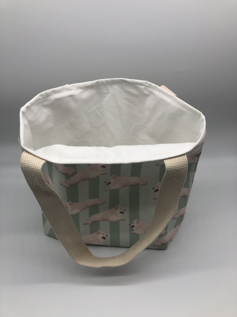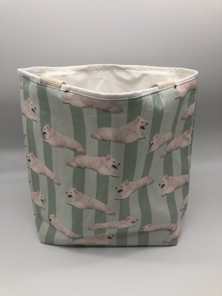 This Samoyed #2 Tote Bag is handmade with Samoyed-themed designer fabric and is lined with white cotton twill. At Beau Designs, I create hand-detailed products with natural tones, organic textures, and high-end materials. Another product complimenting this Samoyed #2 Tote Bag is the President’s Day Dog Scarf. If you would like, Click here to visit my Etsy store.