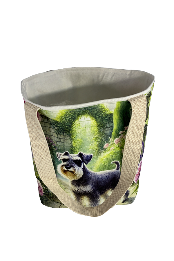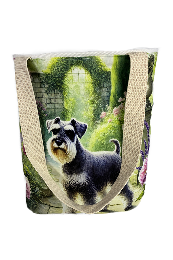 But beauty is not merely skin-deep. This Handmade Designer Schnauzer Garden Tote Bag boasts functionality as impressive as its aesthetics. The exterior fabric, carefully selected for its durability and resilience, keeps your belongings secure and protected during your travels.