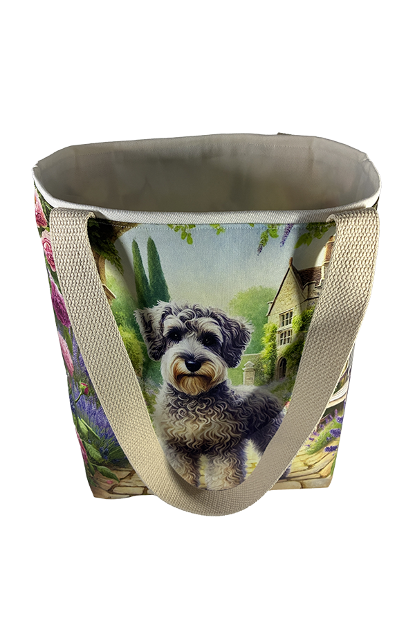 Indulge in the luxury of artisan craftsmanship and canine charm with the Handmade Designer Schnoodle Garden Tote Bag. Impeccably crafted and undeniably chic, it is more than just a bag. It’s a statement piece that celebrates the bond between humans and hounds, encapsulating the joy and companionship that our furry friends bring into our lives. Another product that would complement this tote bag is the  Schnoodle PopArt Tote Bag. If you would like. Click here to visit my Etsy Store.