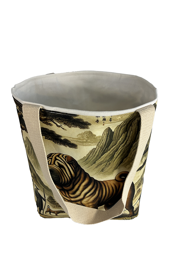 But beauty is not merely skin-deep. This Handmade Designer Shar Pei Hunting Tote Bag boasts functionality as impressive as its aesthetics. The exterior fabric, carefully selected for its durability and resilience, keeps your belongings secure and protected during your travels.