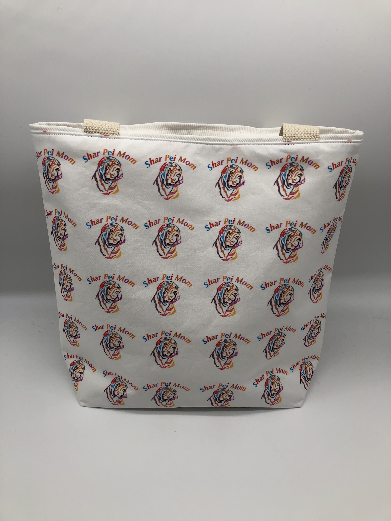 This Shar Pei Mom Tote Bag is handmade with Shar Pei-themed designer fabric and is lined with white cotton twill. At Beau Designs, I create hand-detailed products with natural tones, organic textures, and high-end materials. Another product complimenting this Shar Pei Tote Bag is the Shar Pei #2 Tote Bag.  If you would like, Click here to visit my Etsy store.