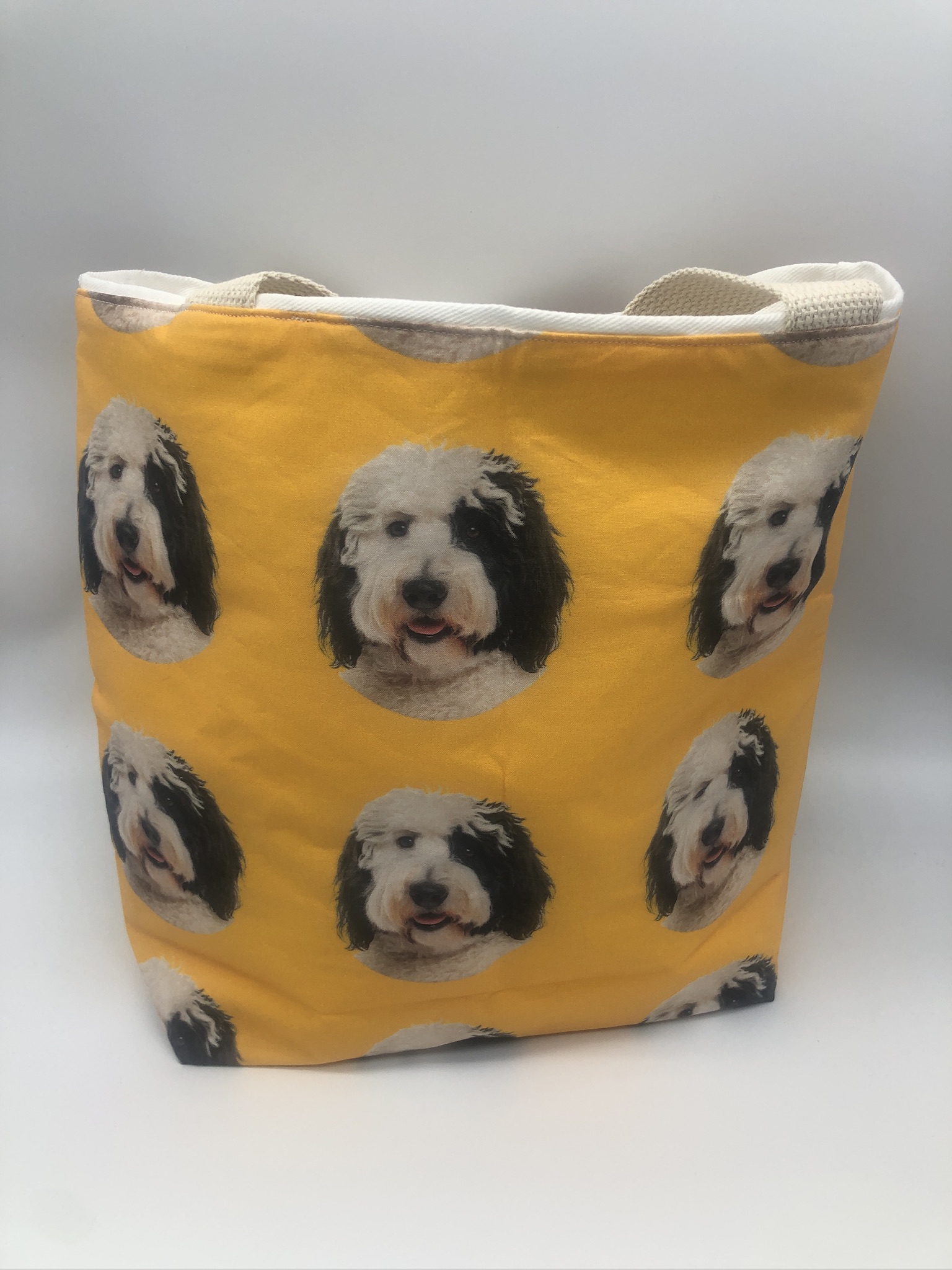 Introducing the epitome of canine elegance and artisan craftsmanship: the Handmade Designer Sheepadoodle Orange Tote Bag. Standing proud at 14 inches tall and stretching 16 inches wide, this exquisite accessory is a tribute to both functionality and style. Crafted with meticulous attention to detail, it is destined to become the darling of your wardrobe. At first glance, your eyes are immediately drawn to the captivating design gracing the exterior of the tote. Adorning the durable fabric are charming sheepadoodle dogs, each one infused with personality and charm. Their playful demeanor brings a touch of whimsy to the bag, making it a conversation starter wherever you go. But beauty is not merely skin-deep. This Sheepadoodle Orange tote bag boasts functionality as impressive as its aesthetics. The exterior fabric, carefully chosen for its durability and resilience, ensures that your belongings remain secure and protected during your travels. Meanwhile, the spacious interior, lined with 100 percent cotton white twill, provides a soft and luxurious sanctuary for your essentials. As your fingers trace the contours of the bag, you’ll appreciate the thoughtful details woven into its construction. The one and one-half-inch-wide natural cotton strap, meticulously stitched to perfection, offers both comfort and durability, effortlessly accommodating the weight of your belongings while adding a touch of rustic charm to the ensemble. Whether you’re running errands around town or embarking on a weekend getaway, this Sheepadoodle Orange tote bag is your steadfast companion. Its generous dimensions provide ample space for everything you need, from daily essentials to unexpected treasures discovered along the way. With each wear, it becomes not just an accessory, but an extension of your unique personality and style. Indulge in the luxury of artisan craftsmanship and canine charm with the Handmade Designer Sheepadoodle Orange Tote Bag. Impeccably crafted and undeniably chic, it is more than just a bag—it’s a statement piece that celebrates the bond between human and hound, encapsulating the joy and companionship that our furry friends bring into our lives. Another product that would complement this dog scarf is the Superdog #1 Dog Scarf. If you would like. Click here to visit my Etsy Store.