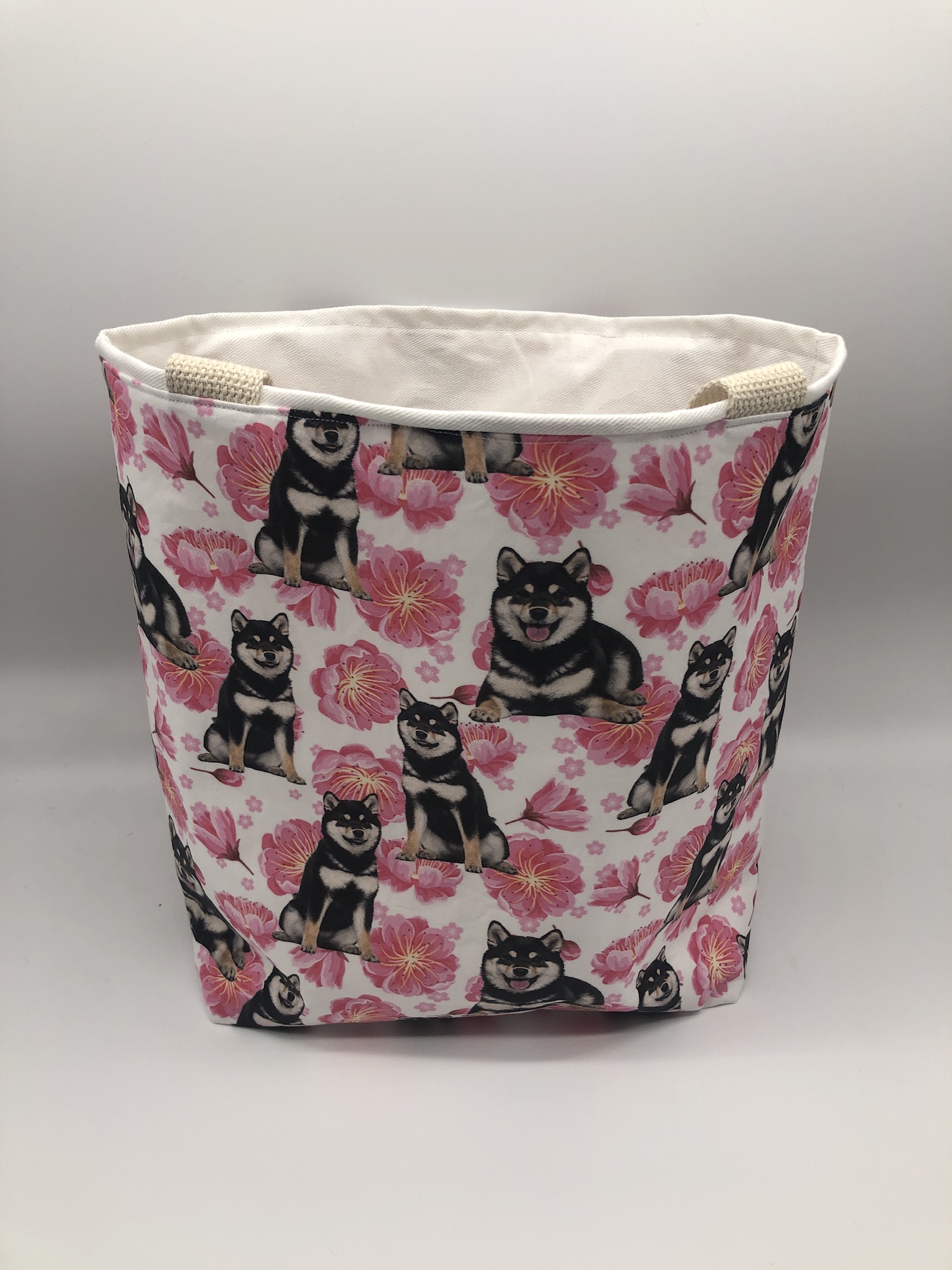 This Shiba Inu #2B Tote Bag is handmade with Shiba Inu-themed designer fabric and is lined with white cotton twill. At Beau Designs, I create hand-detailed products with natural tones, organic textures, and high-end materials. Another product complimenting this Shiba Inu #2B Tote Bag is the Arbor Day Dog Scarf. If you would like, Click here to visit my Etsy store.