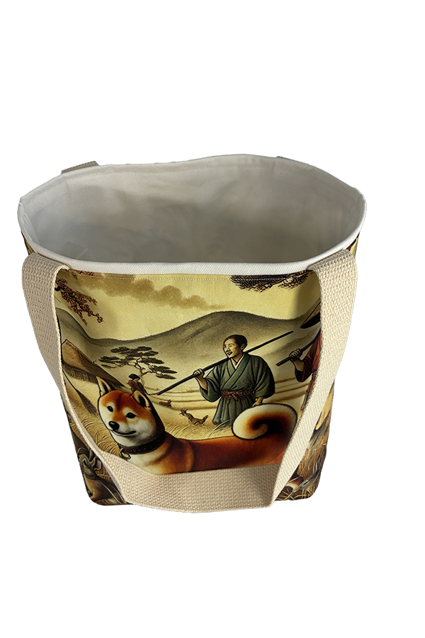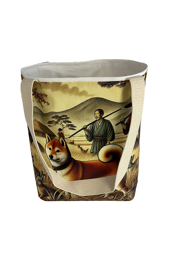 But beauty is not merely skin-deep. This Handmade Designer Shiba Inu Hunting Tote Bag boasts functionality as impressive as its aesthetics. The exterior fabric, carefully selected for its durability and resilience, keeps your belongings secure and protected during your travels.