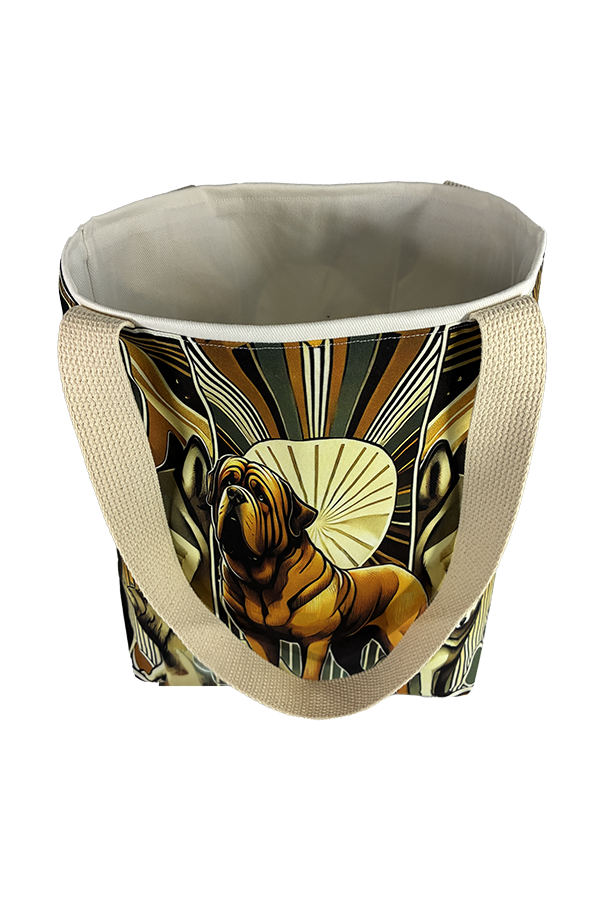Introducing the epitome of canine elegance and artisan craftsmanship: the Handmade Designer Spanish Mastiff Deco Tote Bag. Standing proud at 14 inches tall and stretching 16 inches wide, this exquisite accessory is a tribute to functionality and style. Crafted with meticulous attention to detail, it will become your wardrobe’s darling. At first glance, your eyes are immediately drawn to the captivating design gracing the tote’s exterior. Your pet is displayed in a beautiful scene with personality and charm. Their playful demeanor brings a touch of whimsy to the bag, making it a conversation starter wherever you go.